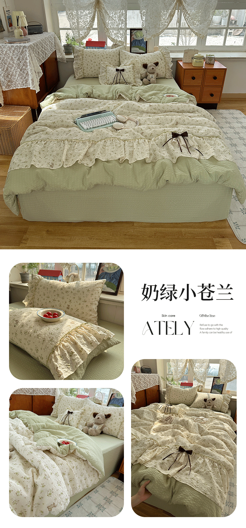 (总)栩裕纺织 2026新款全棉双层纱床盖三件套四件套,可可甜心粉,梦寐花都,抹茶小团子-咖,茉莉清风-粉,木映-绿,暮冬-紫,甜音少女-桔,樱桃奶盖-粉