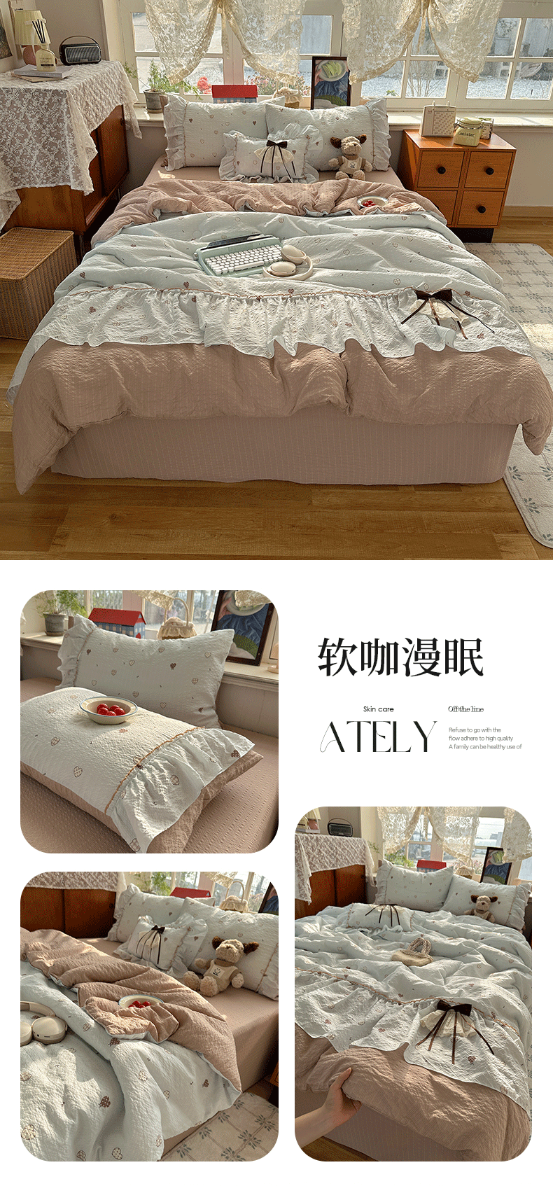 (总)栩裕纺织 2026新款提花泡芙棉立体花边简约韩系夏被-夏被三件套四件套
