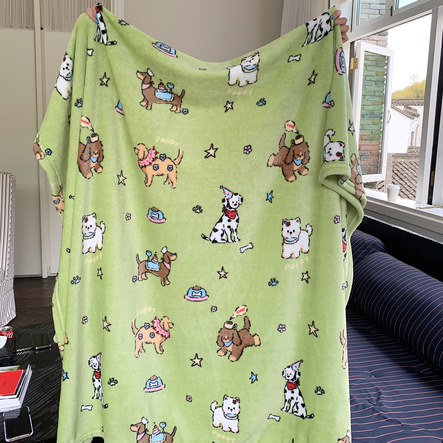 商品名称:桃喜 2026新款330g双面印花牛奶绒毛毯毯子 抹茶小狗日记