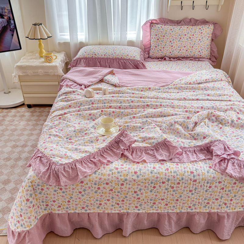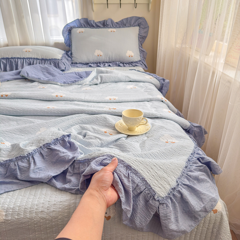 (总)2026新款云感皱皱纱全棉花边款夏被四件套,百福兰,春天里,春晓,豆蔻,蝴蝶梦,可颂,兰黛,山野栀子,素颜,太妃糖,微凉薄荷,心动,遇见,芝士奶酪,紫爱心,紫苏,白茶绿,初恋,蜡笔画,莱茵河畔,桃花诺,小黑兔,春不晚,春日小熊,可颂,陌上花开,莫奈,若欢-绿,若欢紫色,舒芙蕾,田园拾趣-黄,兔小姐,郁金香小兔,波点小兔粉,波点小兔兰,花园兔,情人节,山野栀子,十里桃花粉,十里桃花紫,舒芙蕾,太妃糖,夏天,运动健将熊, 白月光,缤纷几何,格格西高地,海盐蓝小格,黎漫,木槿绿,奶油泡芙,欧若拉,桃夭,甜茶,小晴天,芋泥紫小格,紫色蝴蝶结
