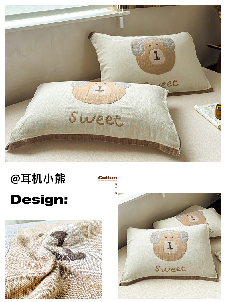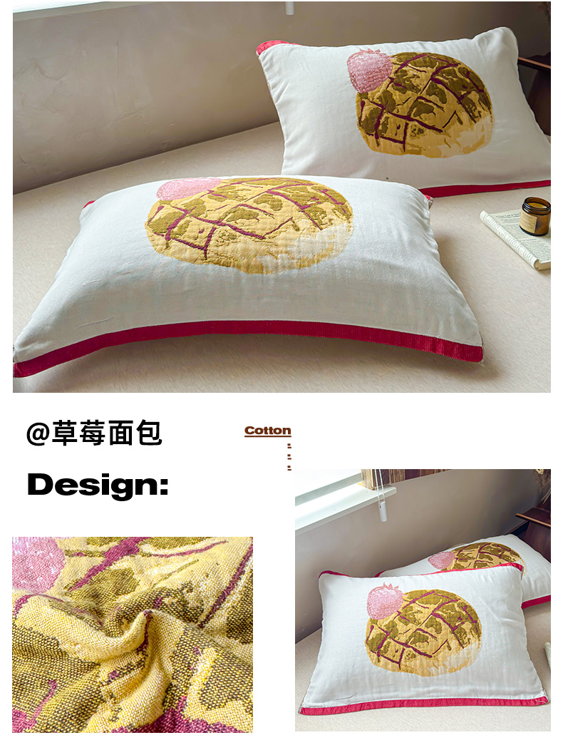(总)乐家毛巾被(工厂自产自销) 2026新款全棉纯棉四层纱布枕巾,草莓面包,春日物语,纯色樱桃,耳机小熊,格纹草莓,黄色熊头,简约条纹,可颂面包,毛绒小兔,毛线小猫,蘑菇兔,南瓜派对,软糯云朵,三只小狗,森林小兔,生日小猫,甜心兔,顽皮熊猫,晚安小熊,五只小猫,心心猫咪,幸运猫