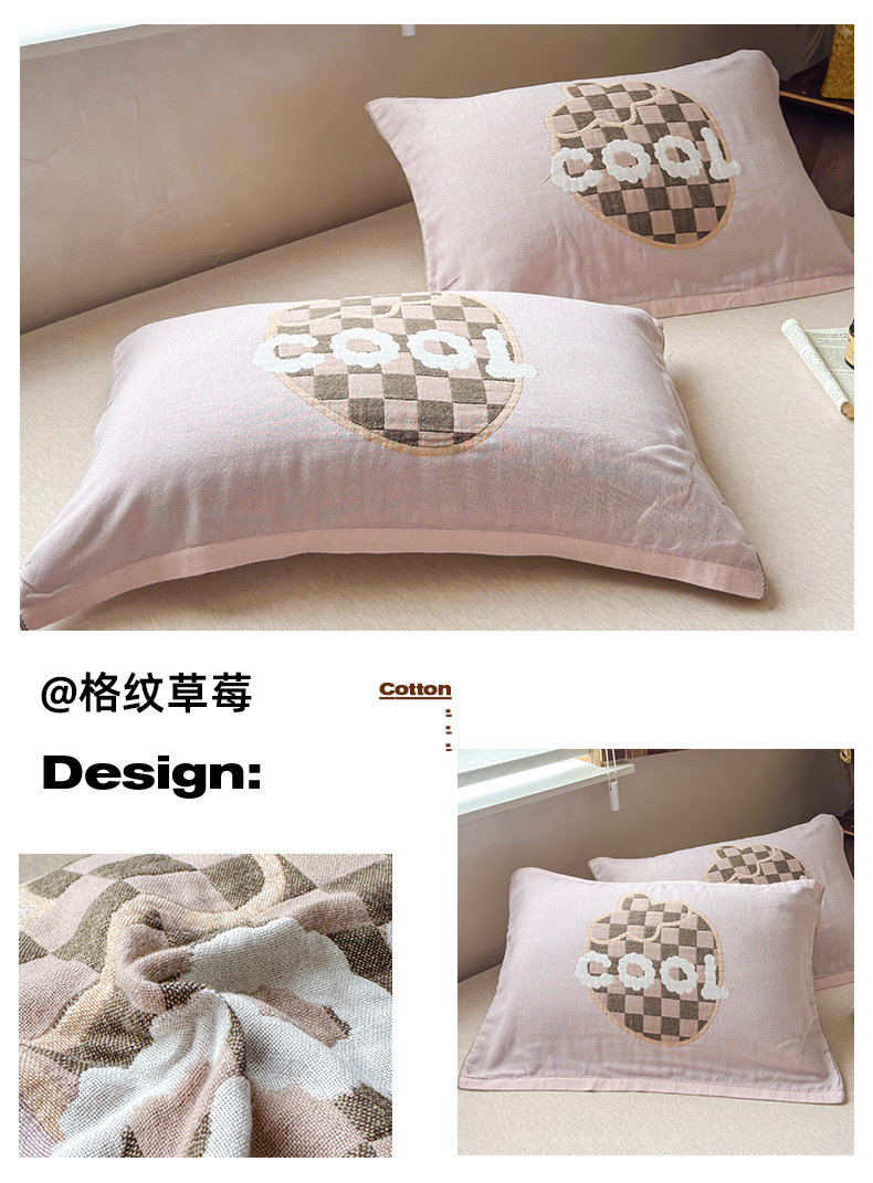 乐家毛巾被(工厂自产自销) 2026新款全棉纯棉四层纱布枕巾 格纹草莓