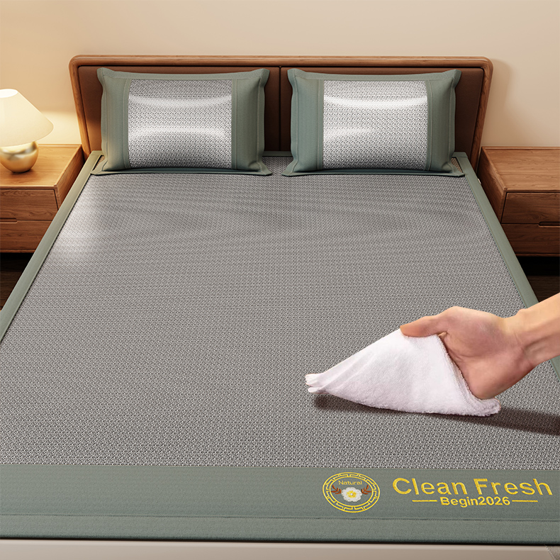(总)怡源梦 2026新款PE高分子加厚三明治冰豆豆水波纹全包包边凉席席子,水波纹-灰色,水波纹-粉色,水波纹-兰色,水波纹-绿色