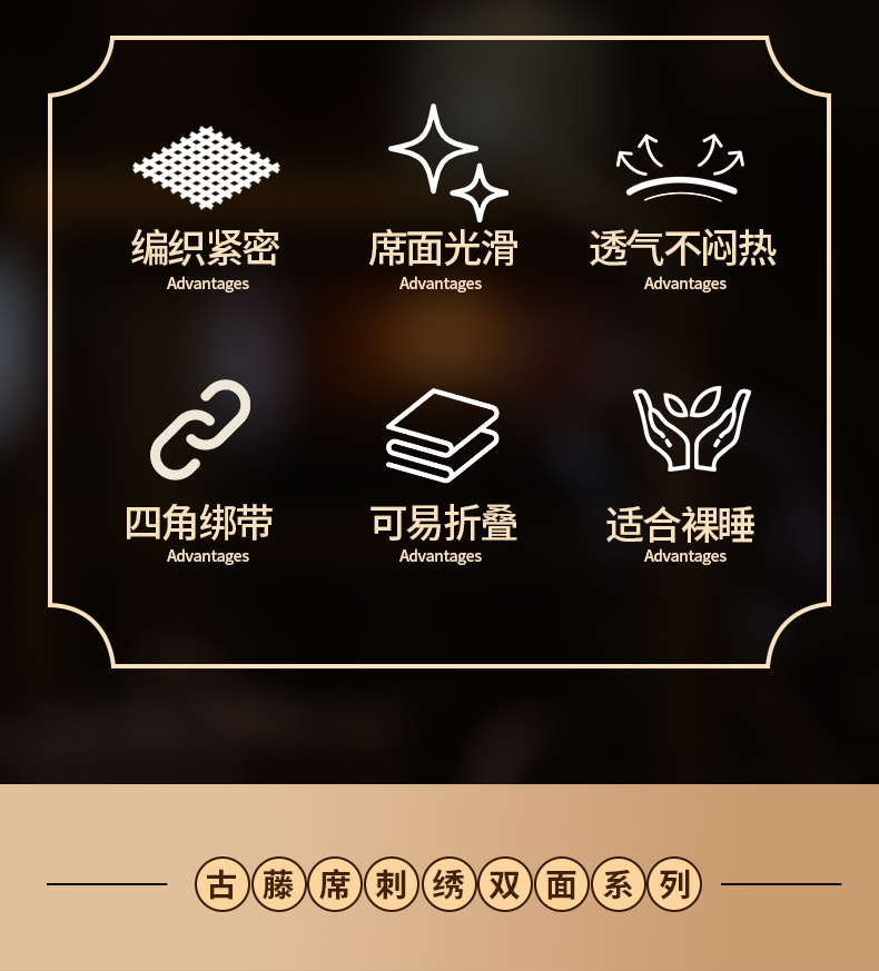 (总)怡源梦 2026新款古藤席刺绣双面系列,古藤席-棕色,古藤席-灰色,古藤席-绿色,古藤席-深咖
