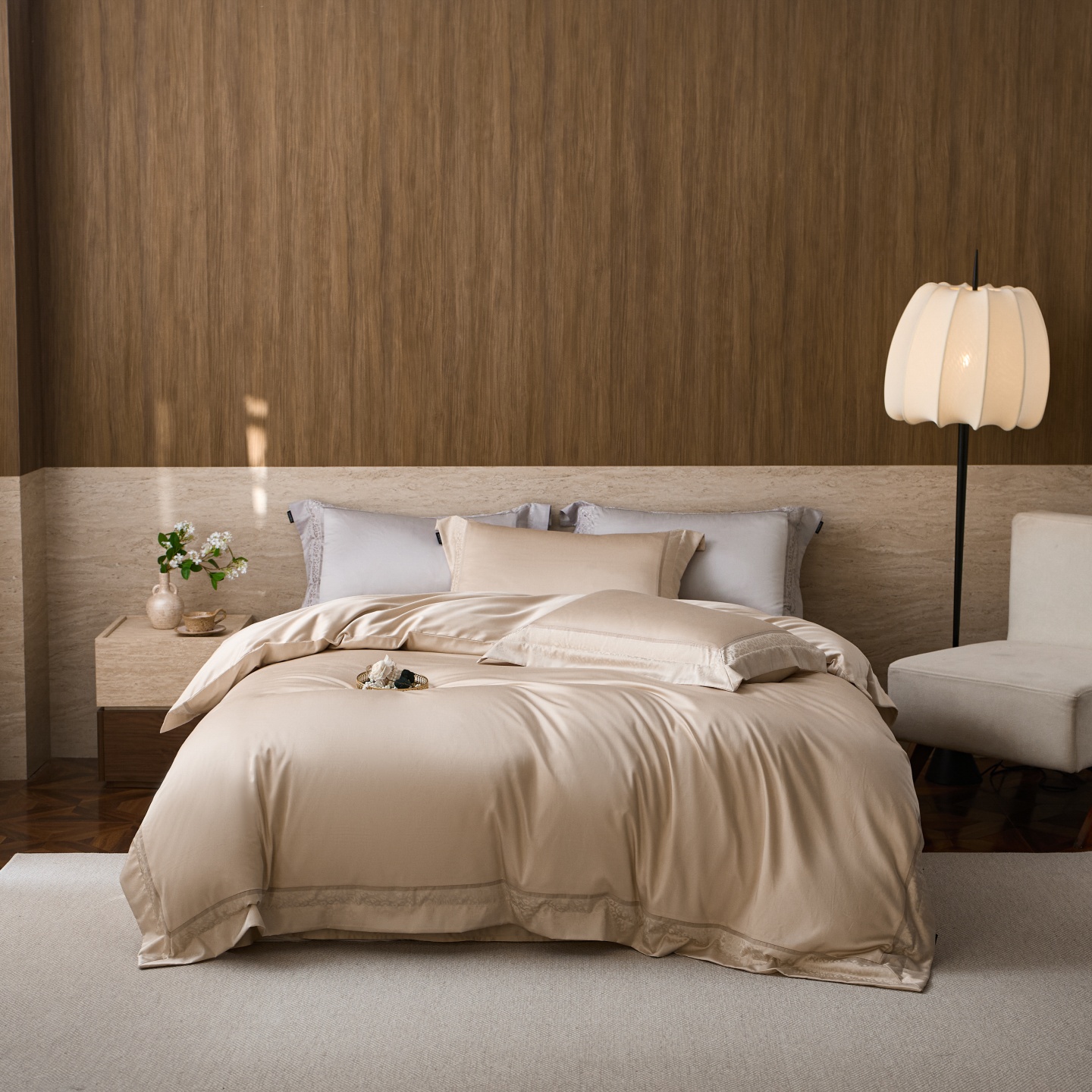 (总)安莱生活 2026新款天丝棉豹影锦边边条绣花拼接款四件套 豹影锦边系列,豹影锦边-琥珀,豹影锦边-嫩粉,豹影锦边-银灰