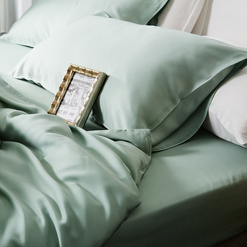 商品名称:涞澳家纺 2018新款素色天丝四件套 月青