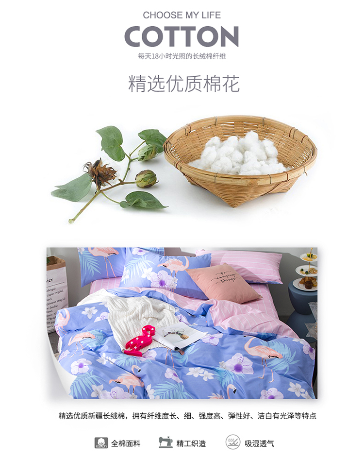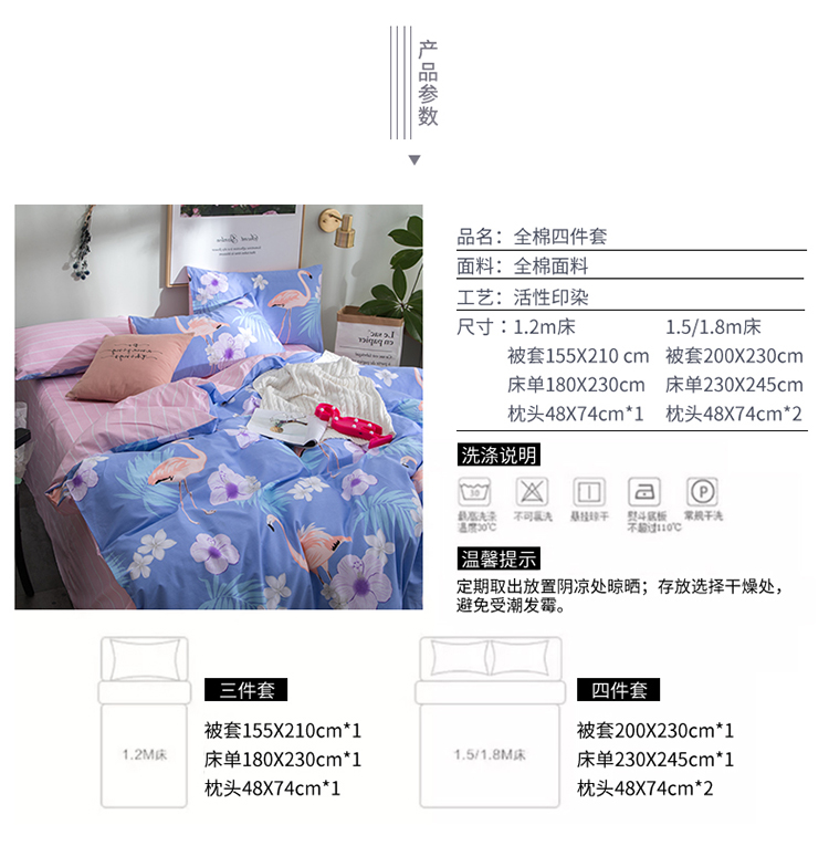 商品名称: 芃成家纺 2020全棉133X72圆网四件套 火鸟爱恋