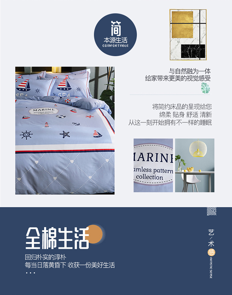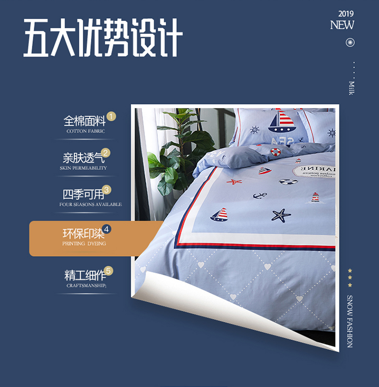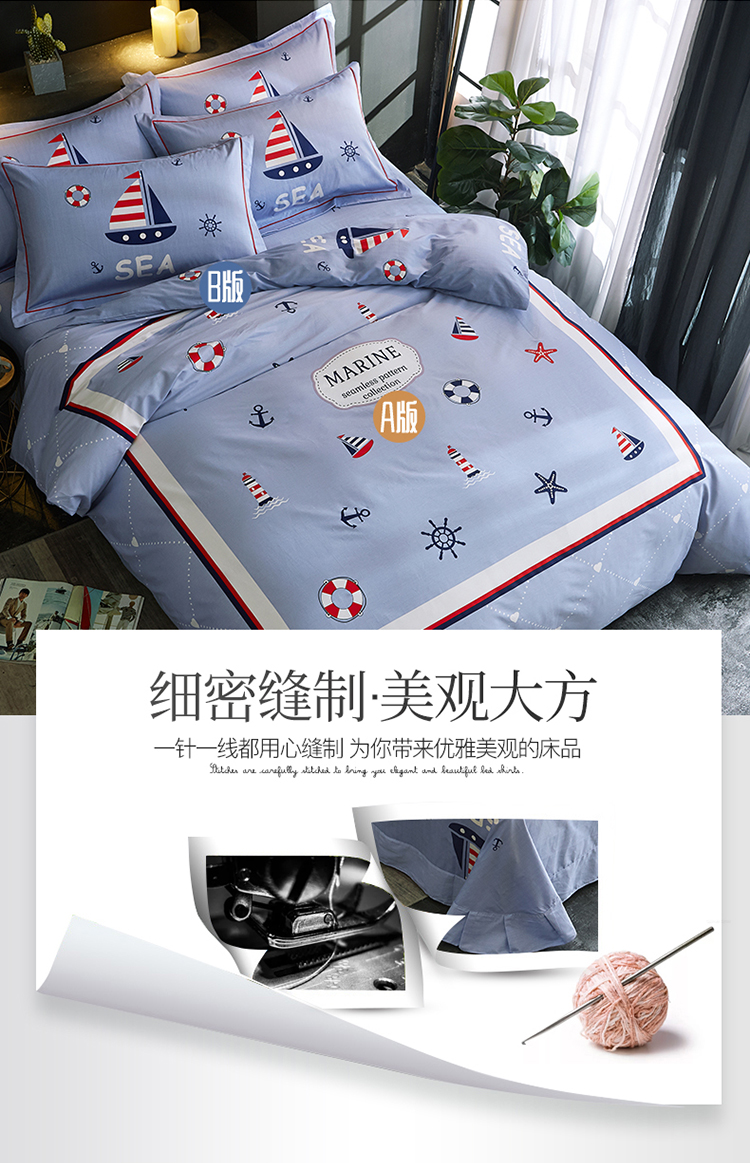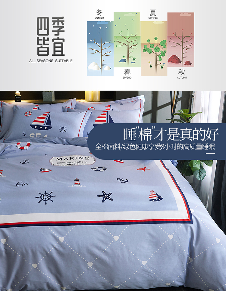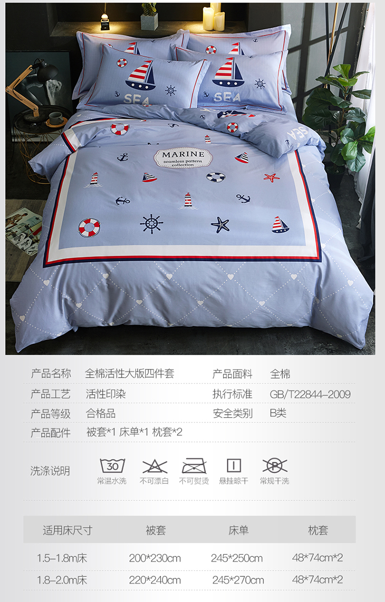 商品名称:雲归梦 2019全棉活性大版简约卡通风格四件套 航海时代
