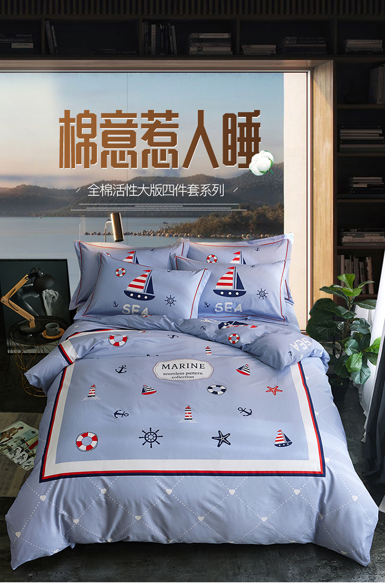 雲归梦 2019全棉活性大版简约卡通风格四件套 航海时代