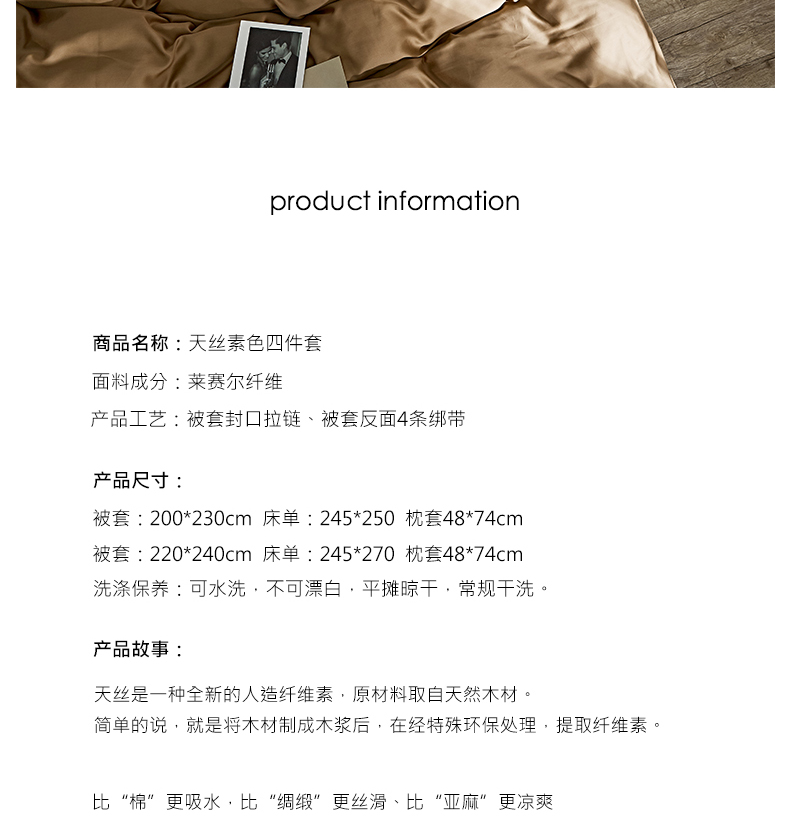 商品名称:涞澳家纺 2018新款素色天丝四件套 杜金