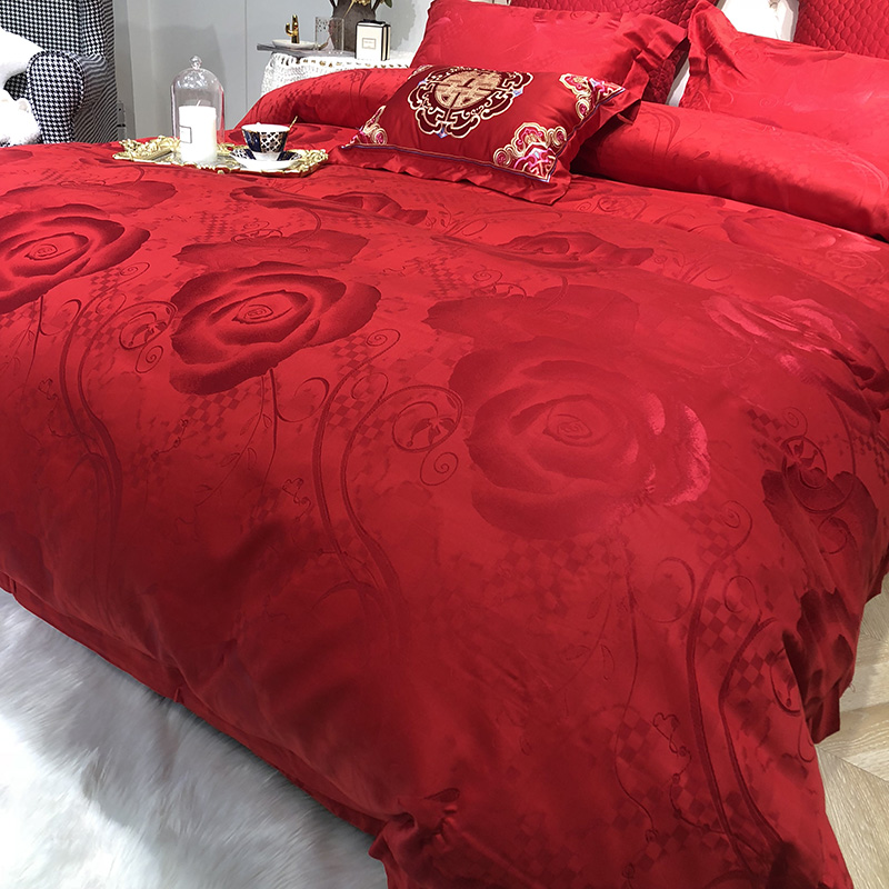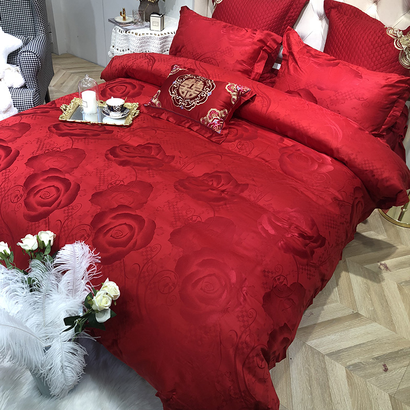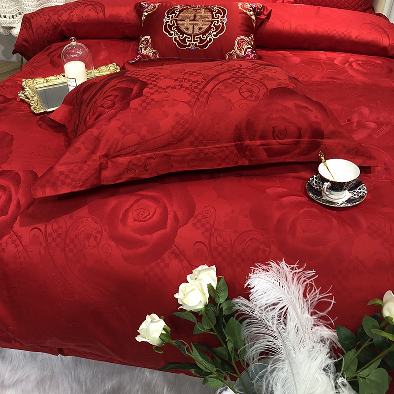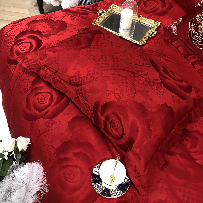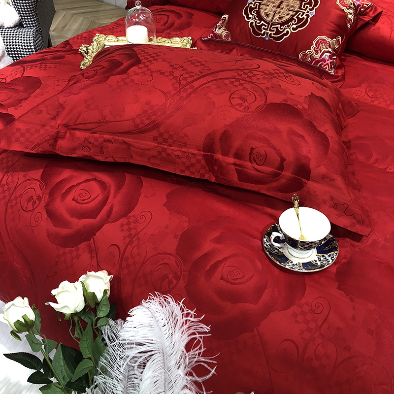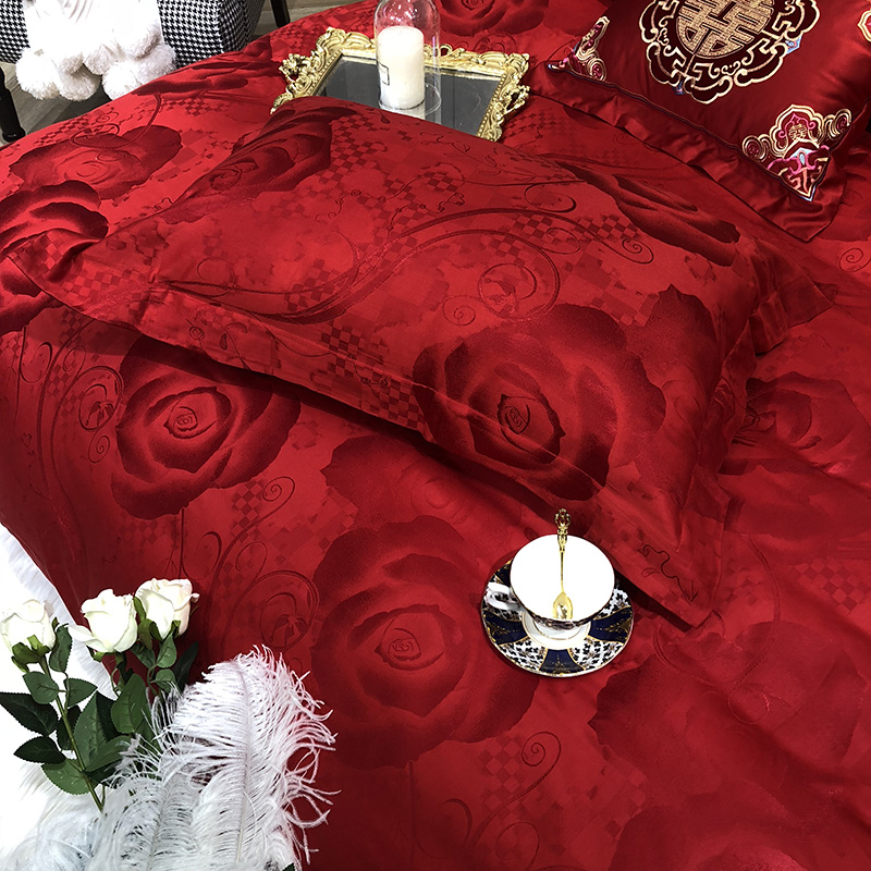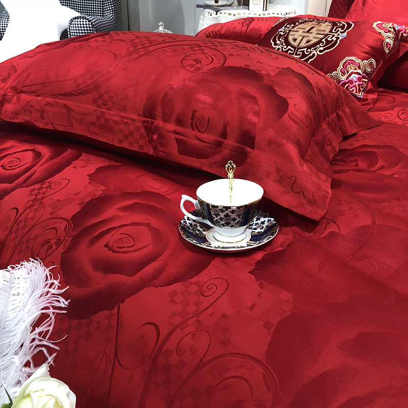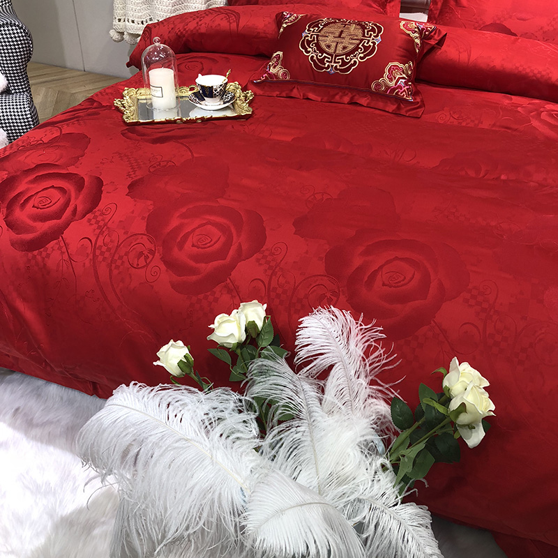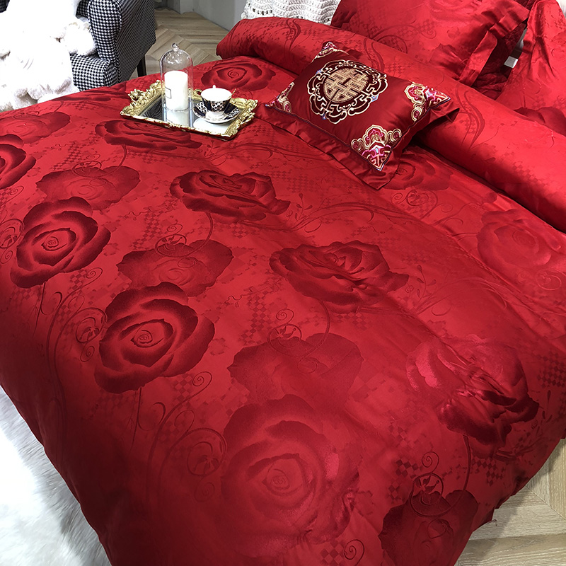 商品名称:馨蕊家居 60仿丝绵提花四件套 炫彩玫瑰-大红
