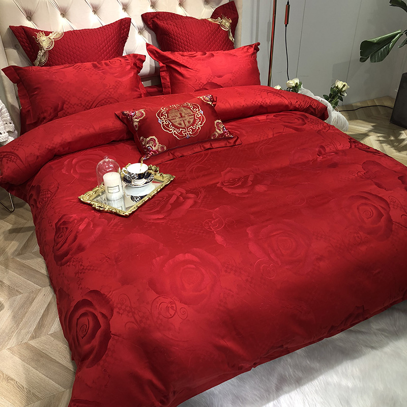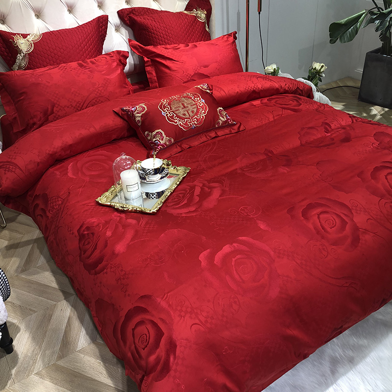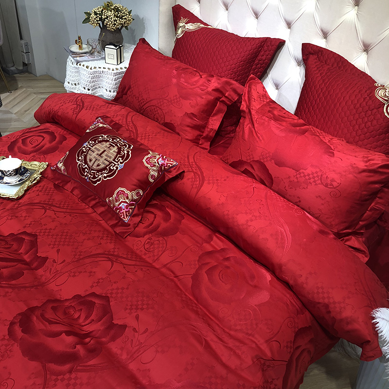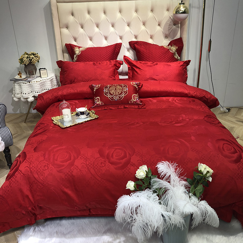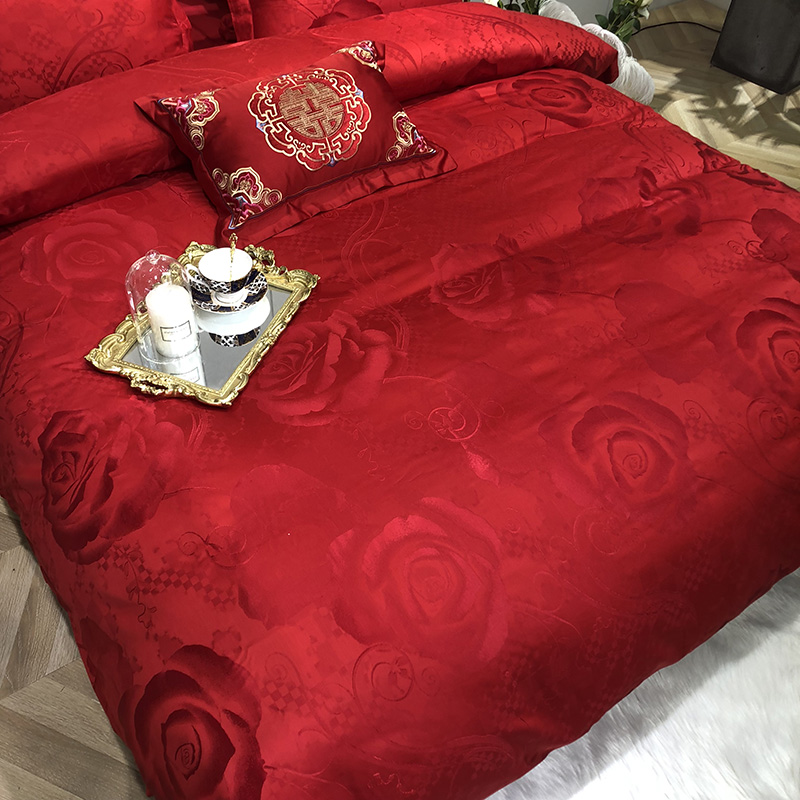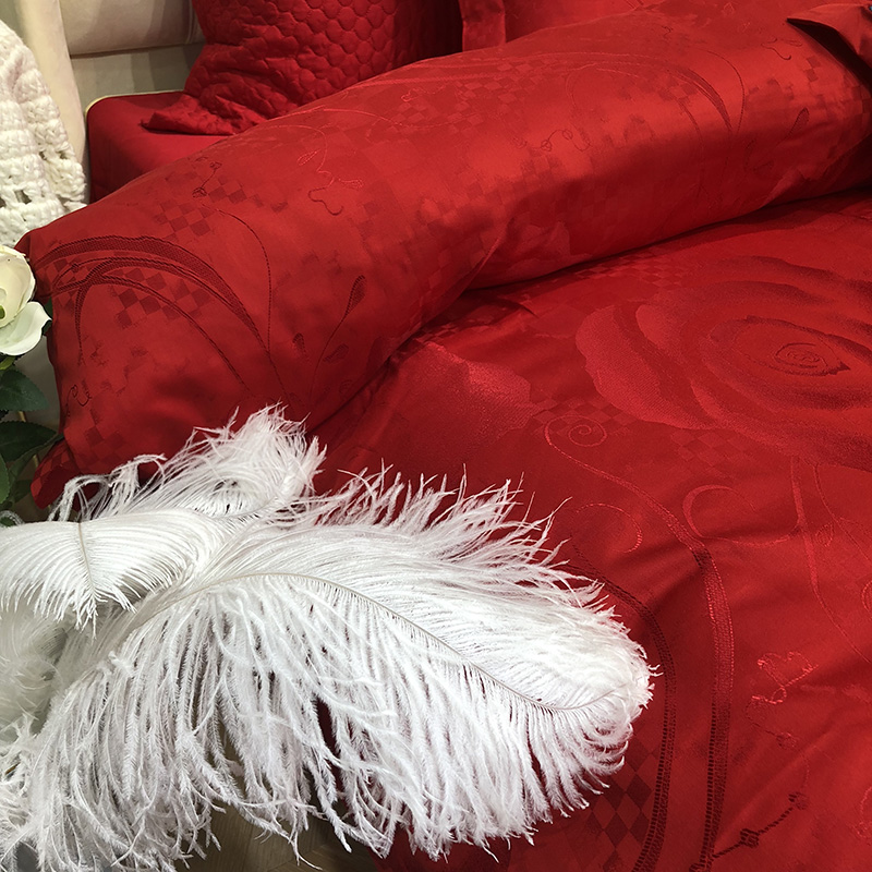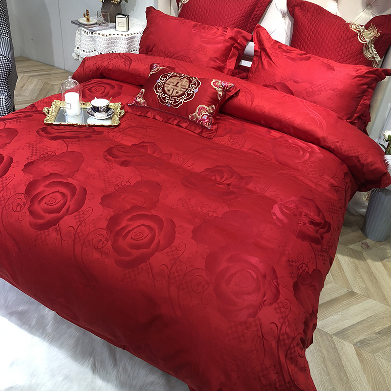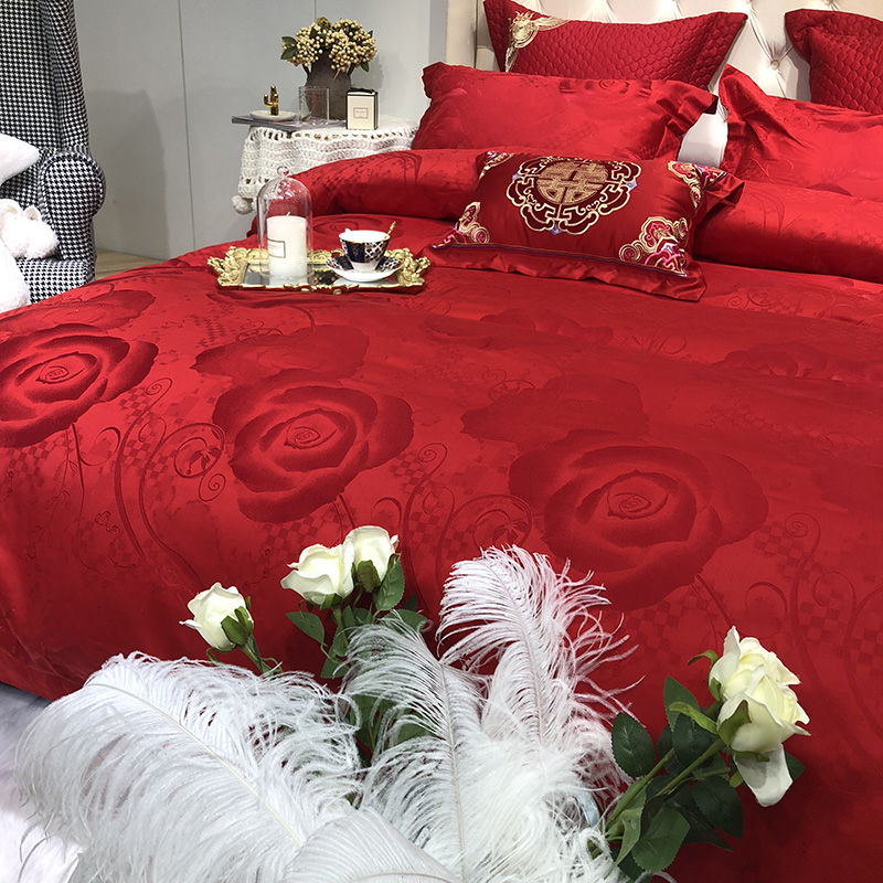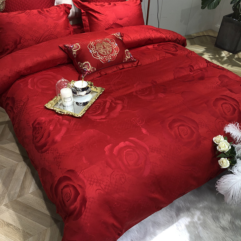 商品名称:馨蕊家居 60仿丝绵提花四件套 炫彩玫瑰-大红