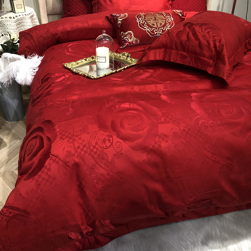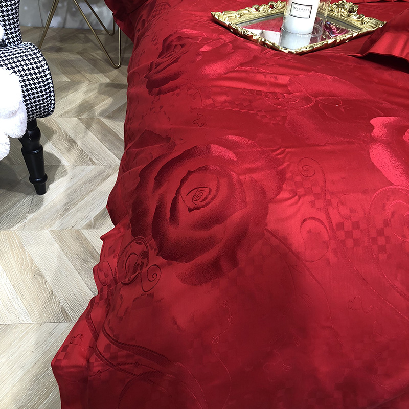 馨蕊家居 60仿丝绵提花四件套 炫彩玫瑰-大红