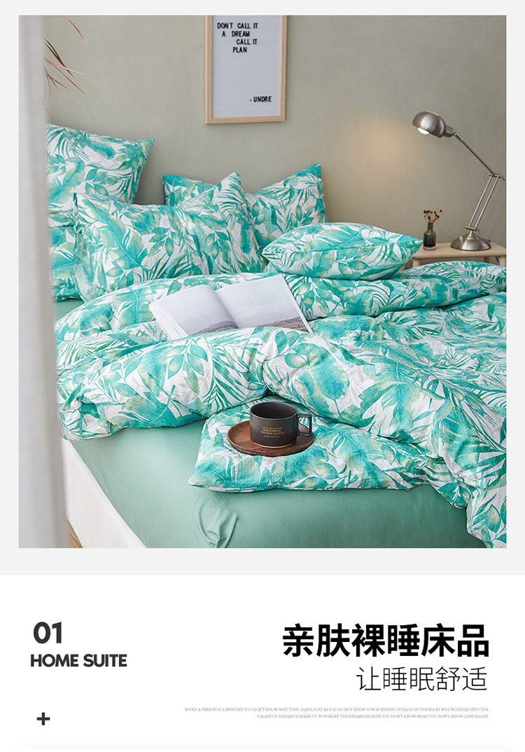 商品名称:棉眠 2019新款13372简约全棉四件套 绿森