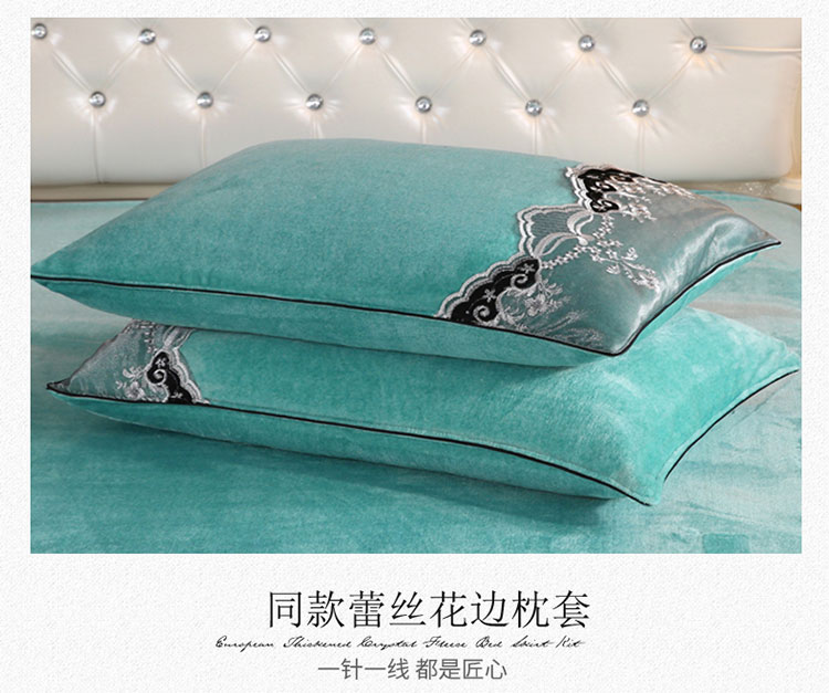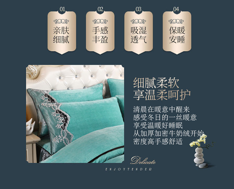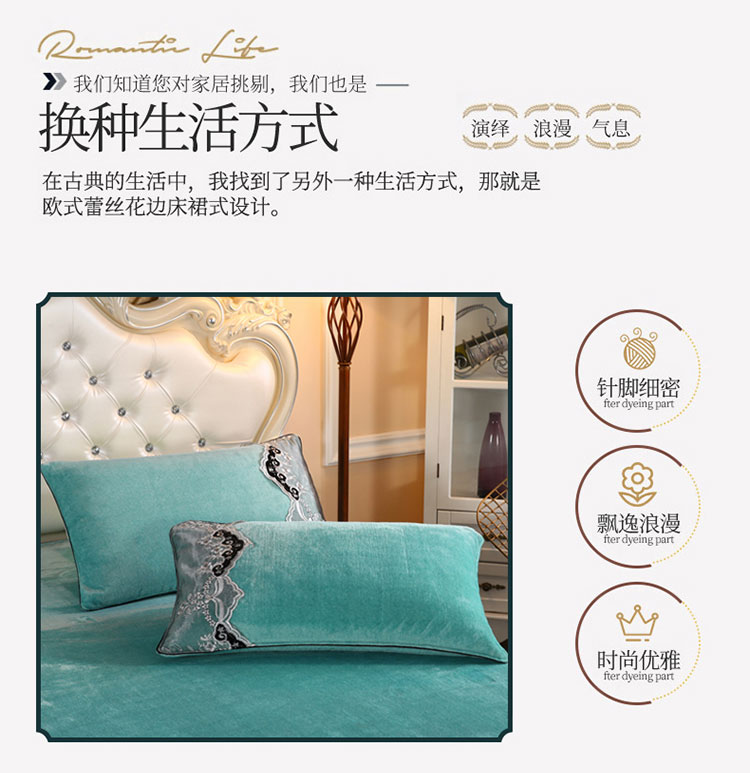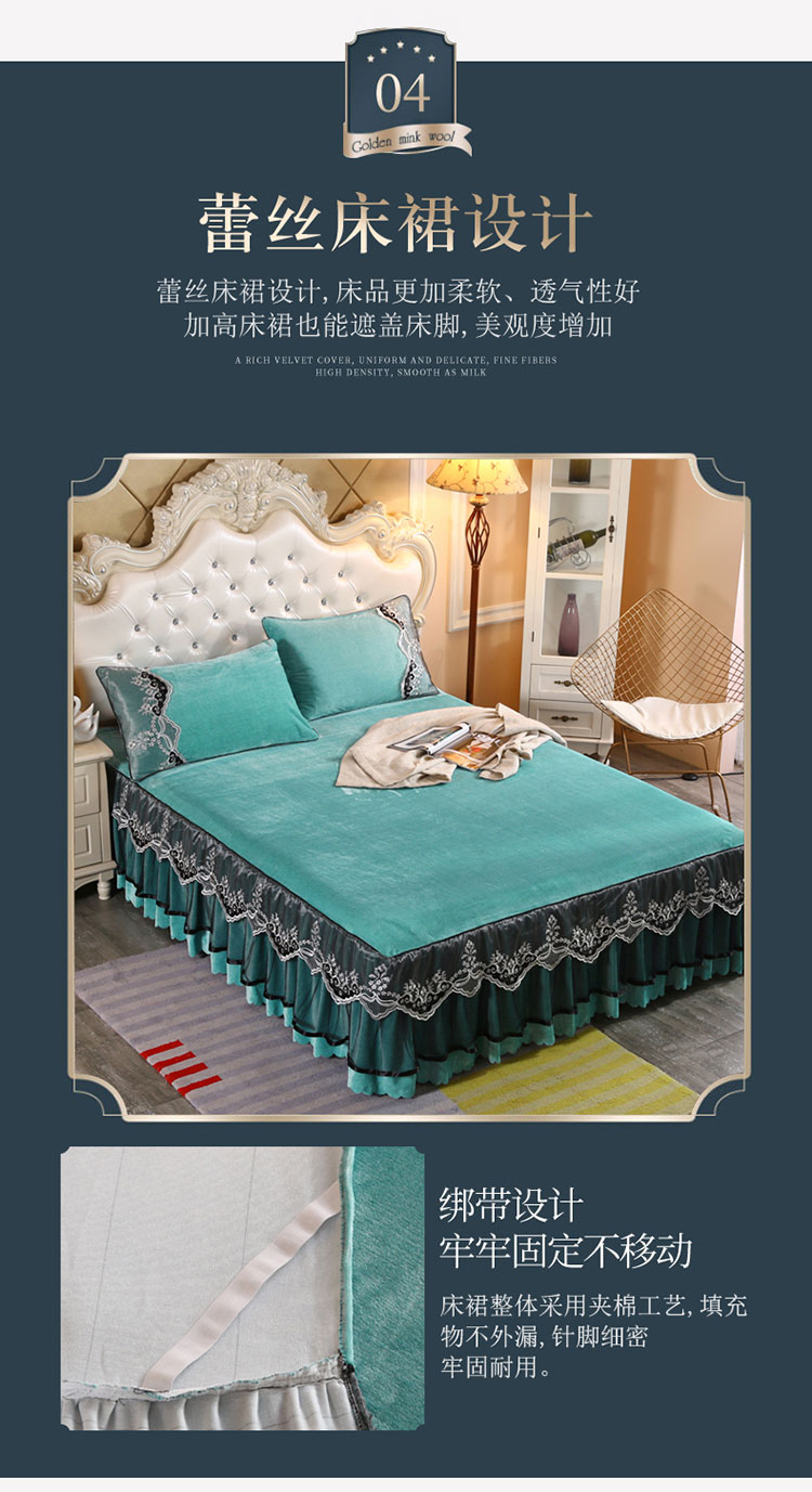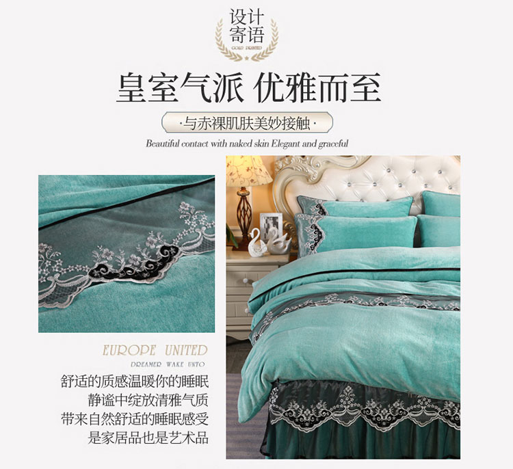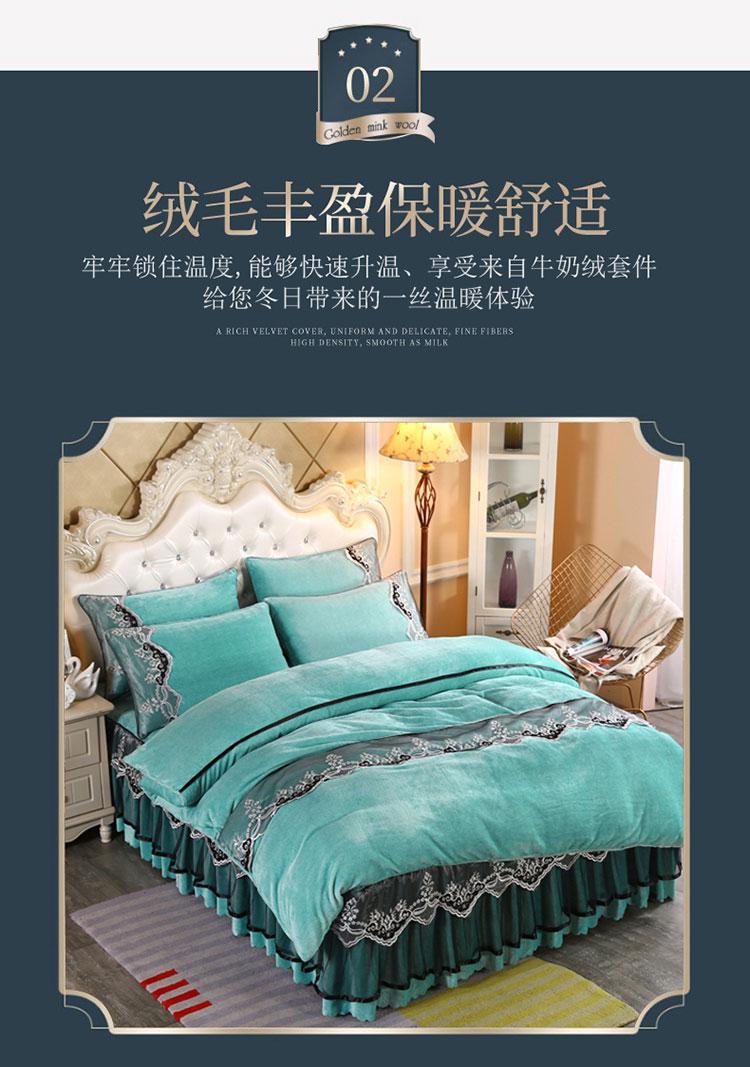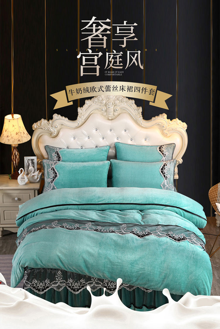情恒家纺 2020新款牛奶绒床裙款四件套 孔雀绿