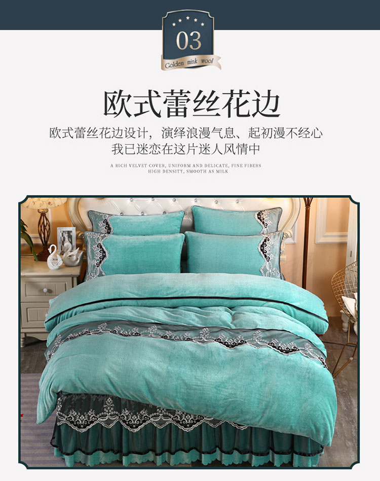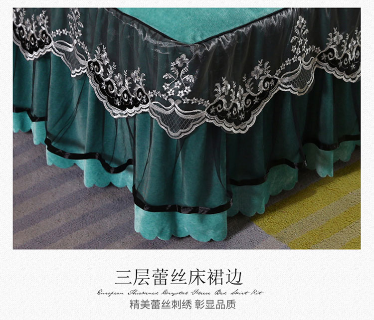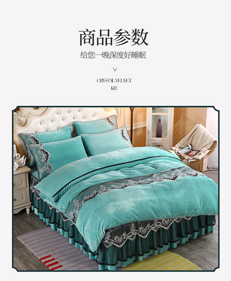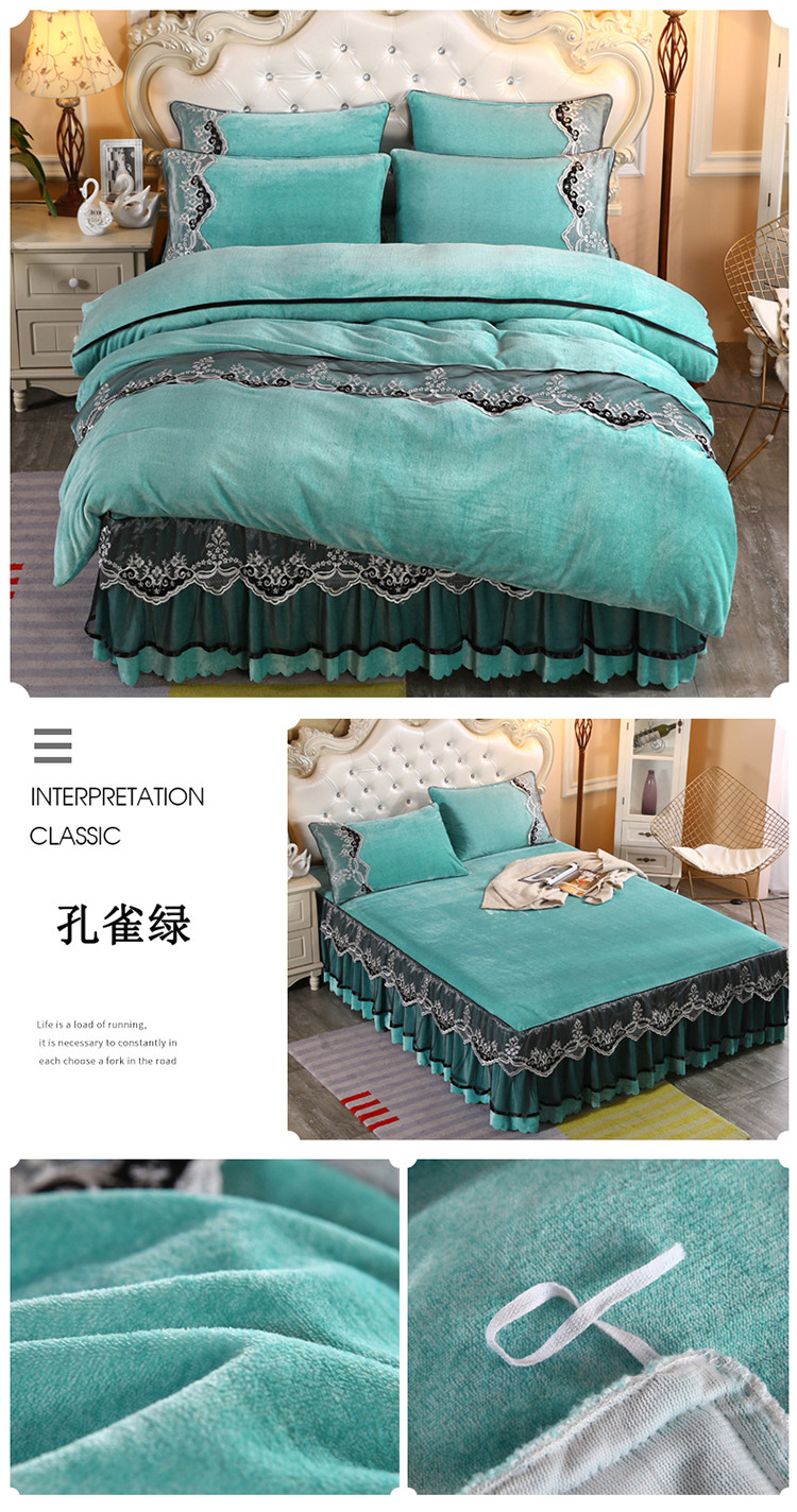 商品名称:情恒家纺 2020新款牛奶绒床裙款四件套 孔雀绿