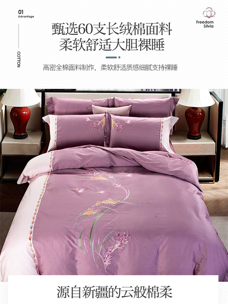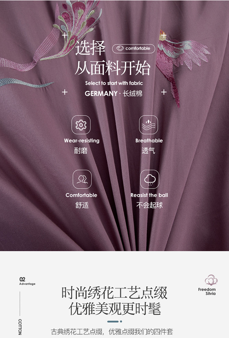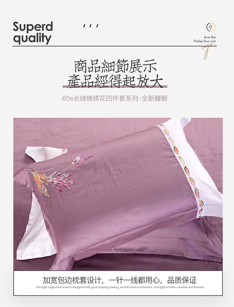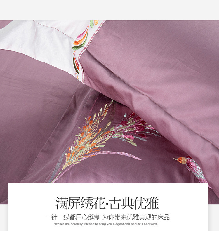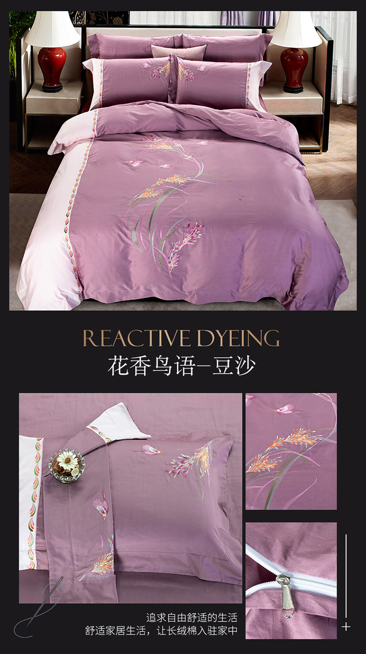 商品名称:雲归梦 2019新款60S长绒棉绣花四件套 花香鸟语-豆沙