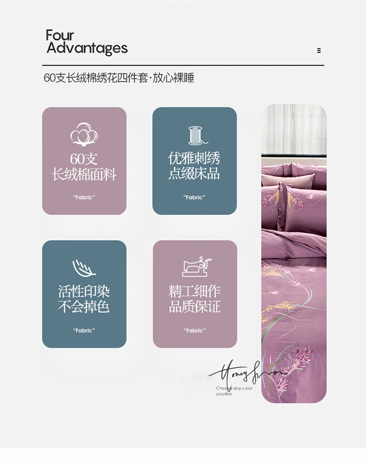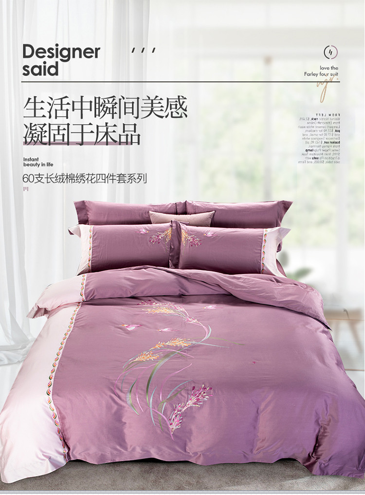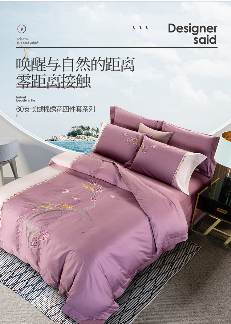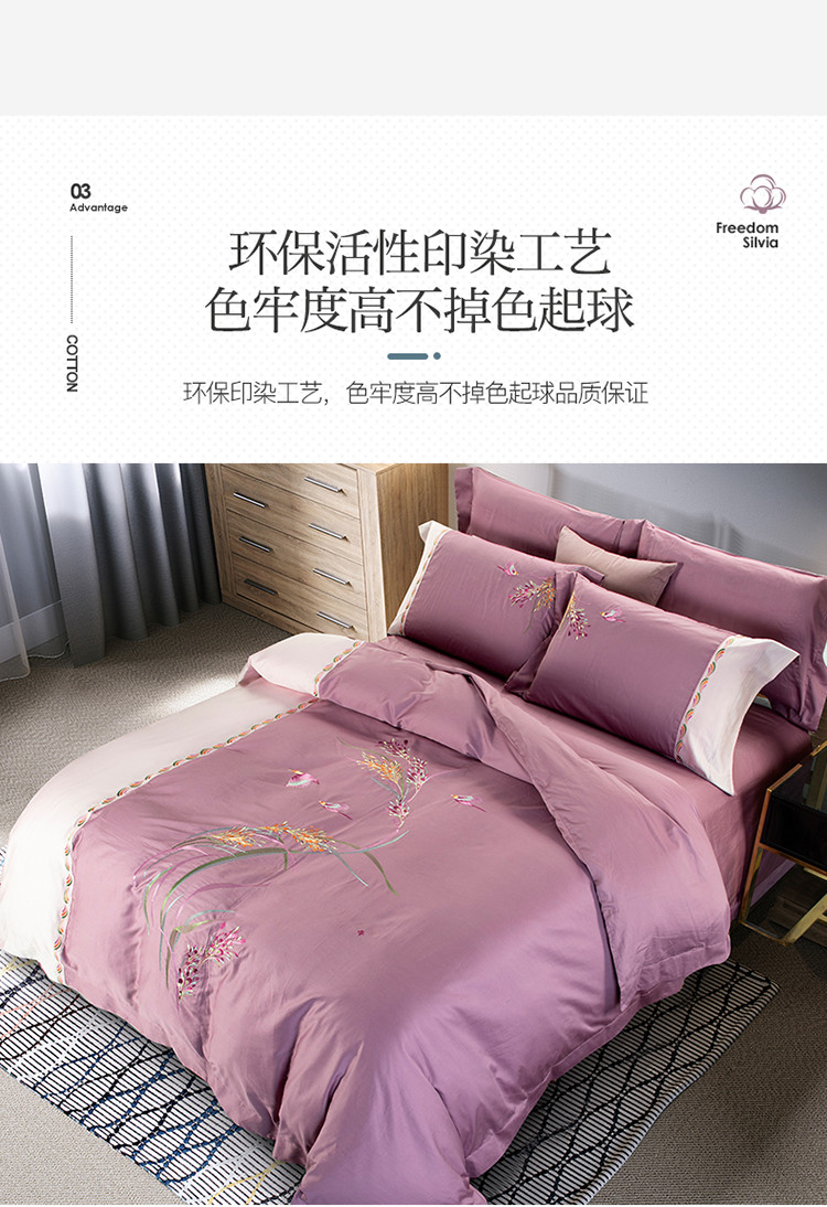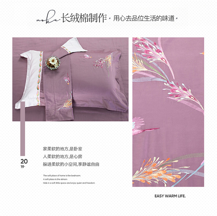 (总)雲归梦 2021新款全棉生态磨毛刺绣四件套,慕思-橙色,慕思-粉紫,慕思-灰,慕思-米黄,慕思-青绿,慕思-天蓝