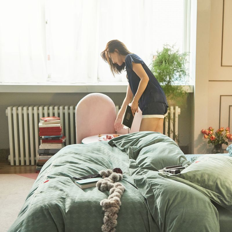 涞澳 2019新款澳绒系列四件套 爱心—浅绿