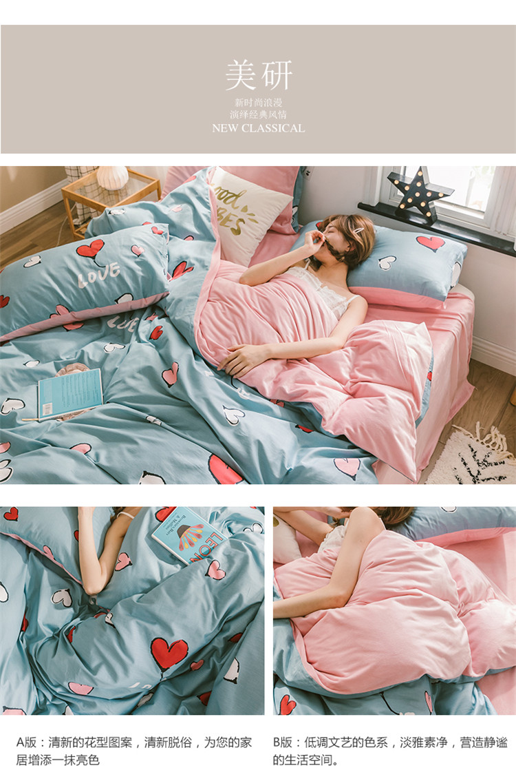 (总)窝米 2022夏季新品素色双拼水洗棉四件套,艾青双拼,冰莓粉双拼,绿云双拼,抹茶绿双拼,少女粉双拼,神仙紫双拼,雾霾蓝双拼,芝士双拼