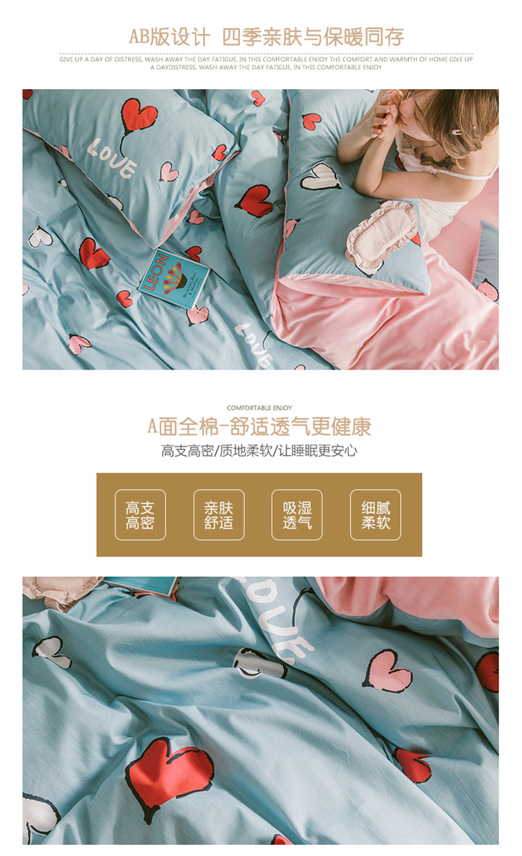 (总)窝米 2020春夏新品全棉13372四件套小波西风系列,草莓酱,木槿,小花花,小尤里