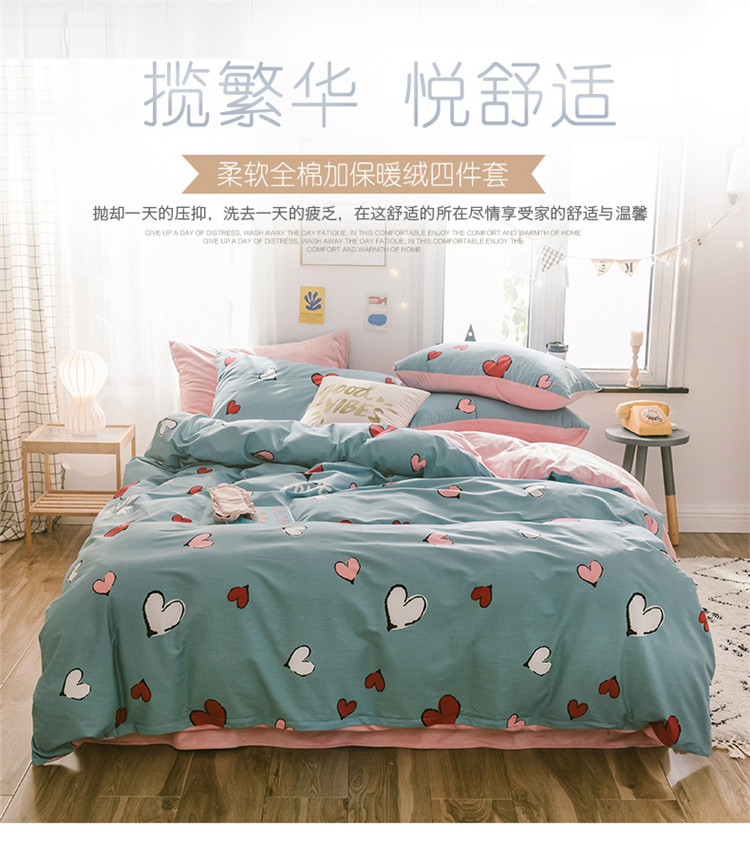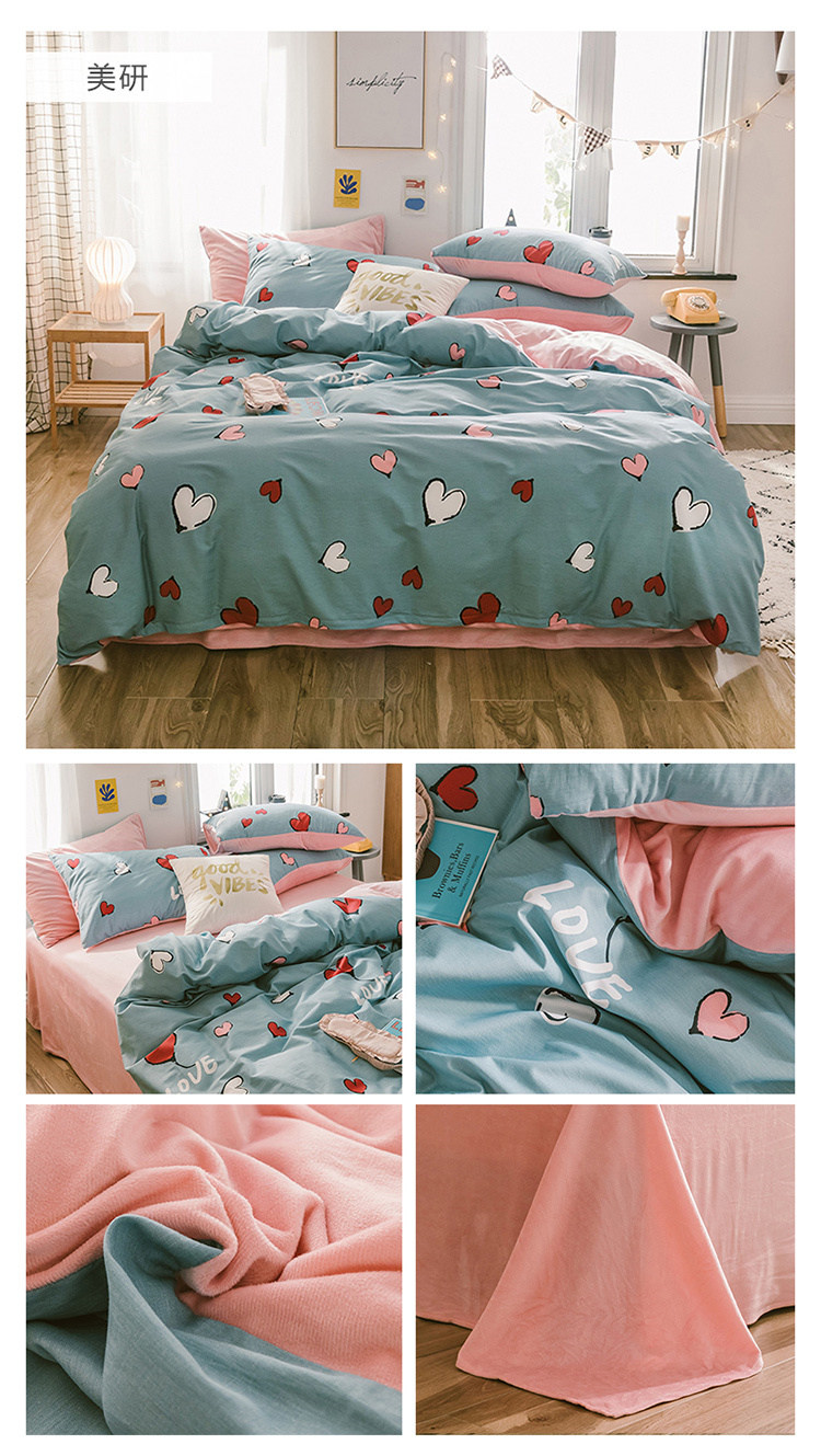 窝米 2019新款圆网棉加绒四件套床单款 美研