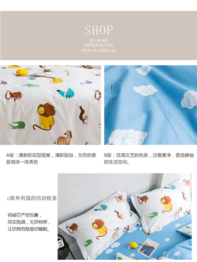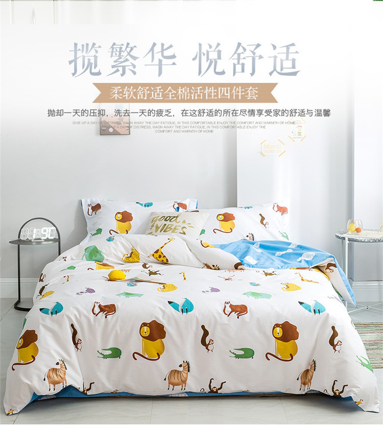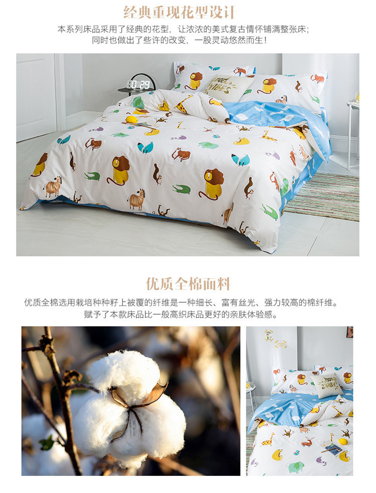 窝米 2019全棉13372减龄卡通系列四件套床单款森林之王