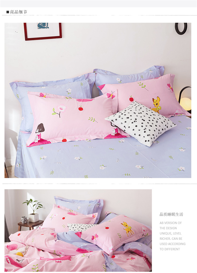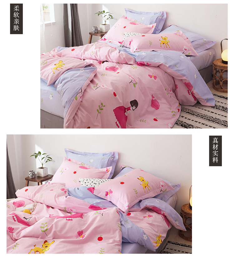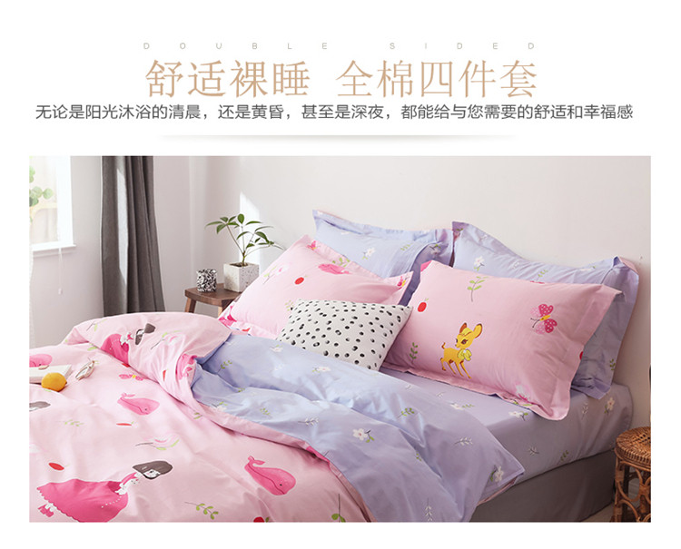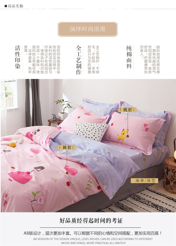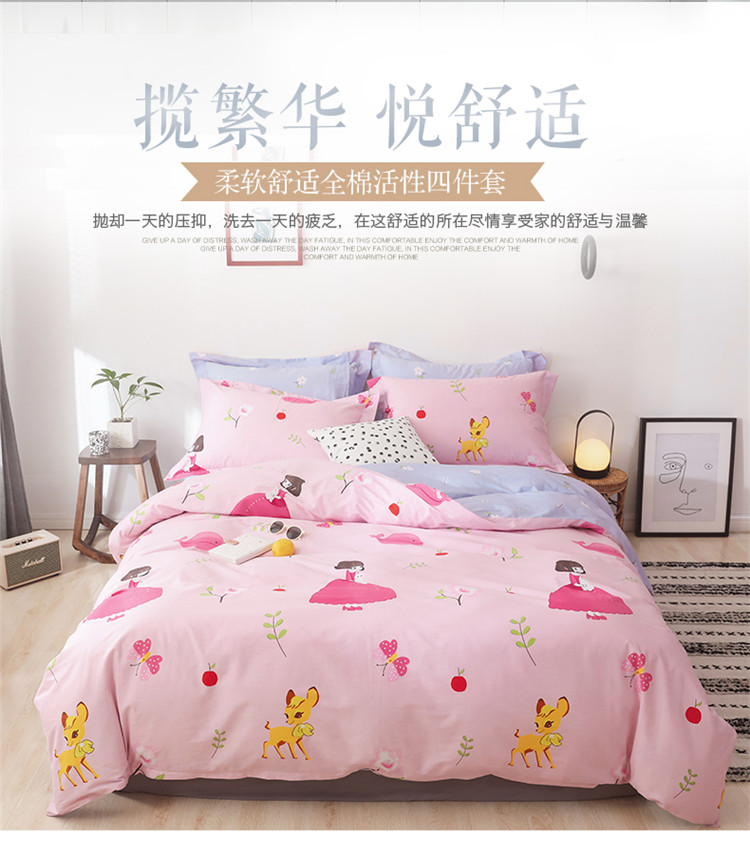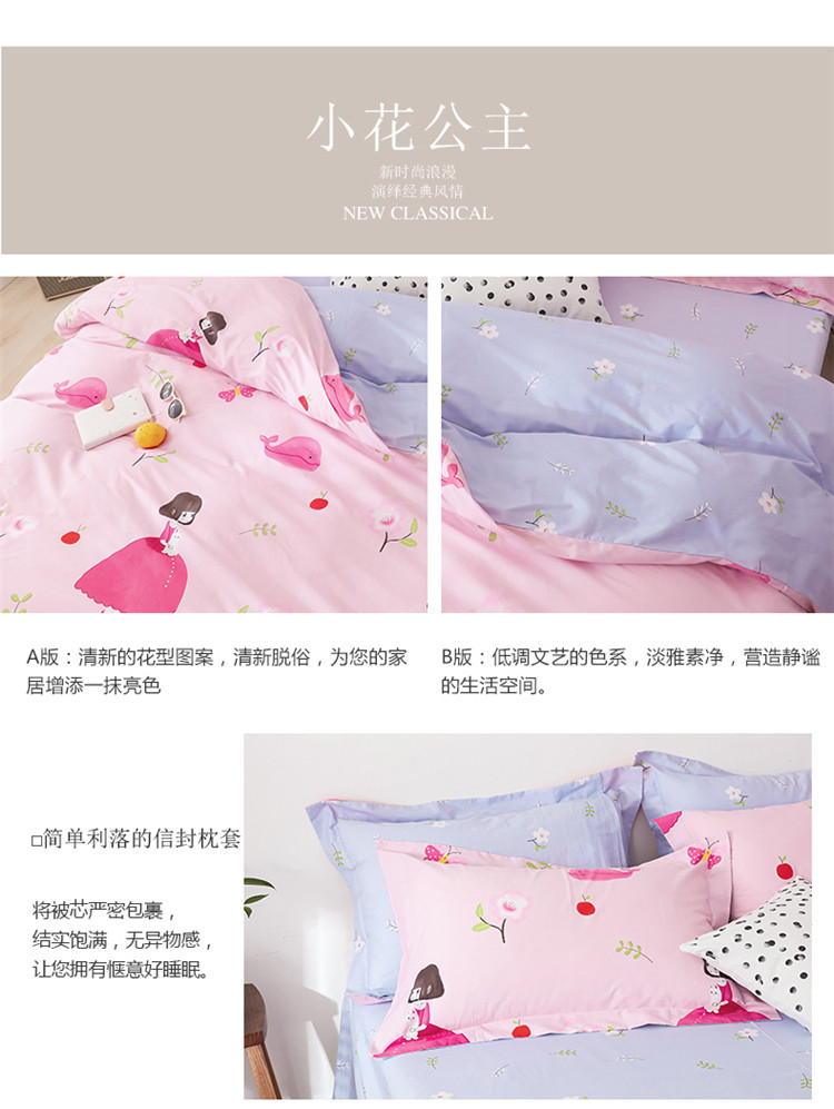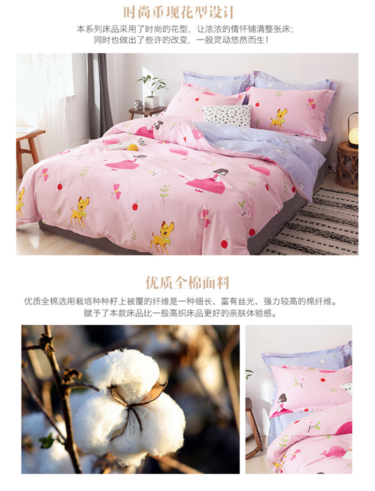 窝米 2019全棉13372卡通花卉系列四件套床单款小花公主