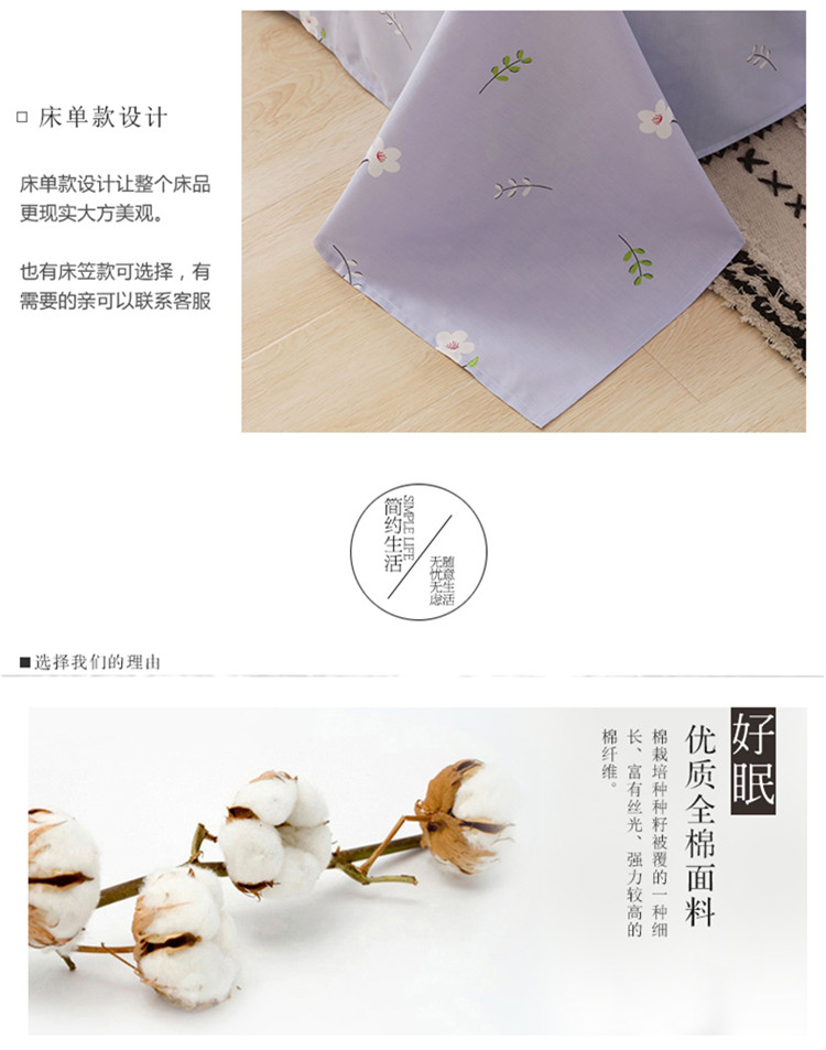 窝米 2020春夏新品全棉13372四件套小波西风系列小花花,小花花