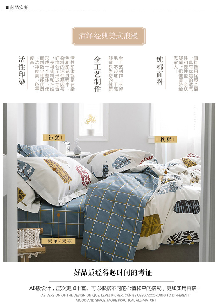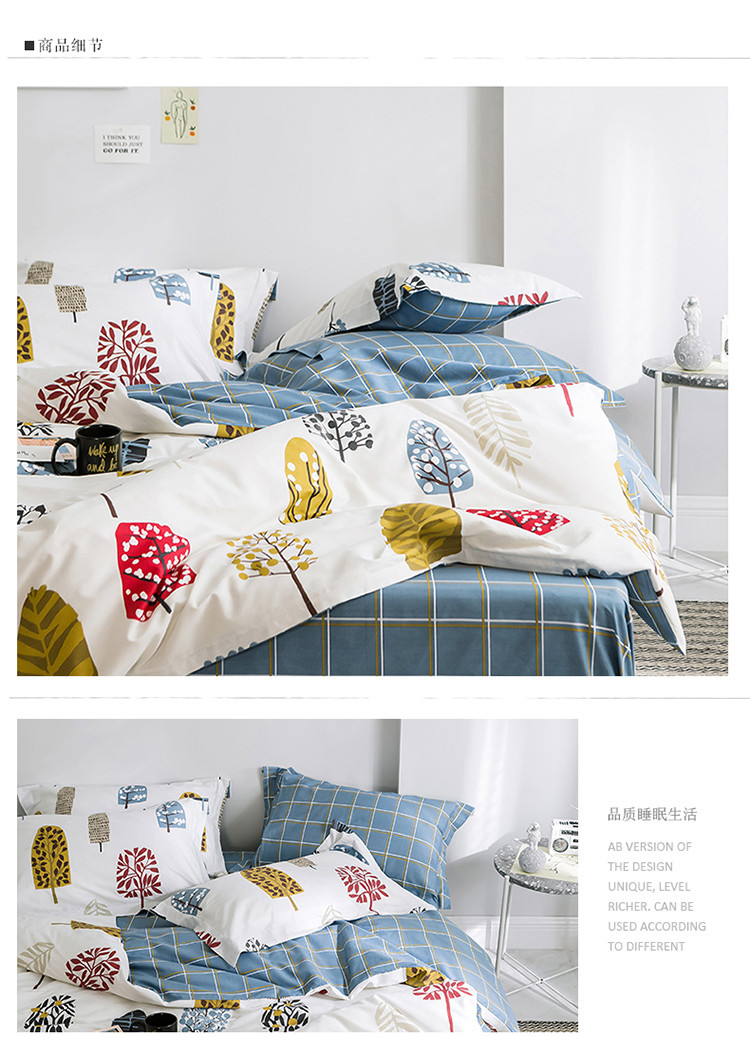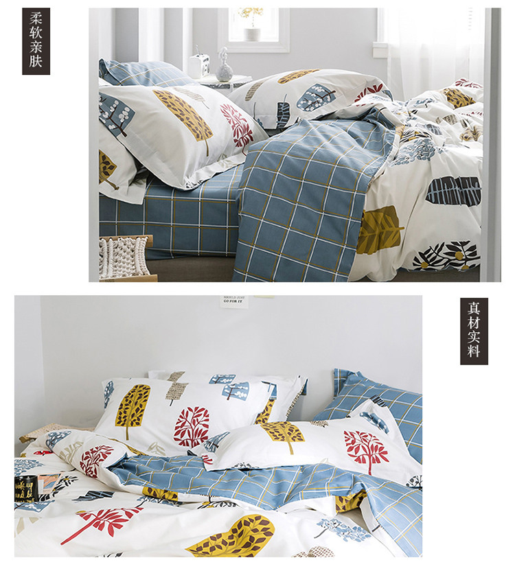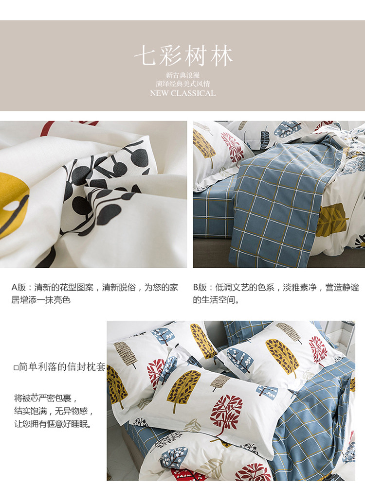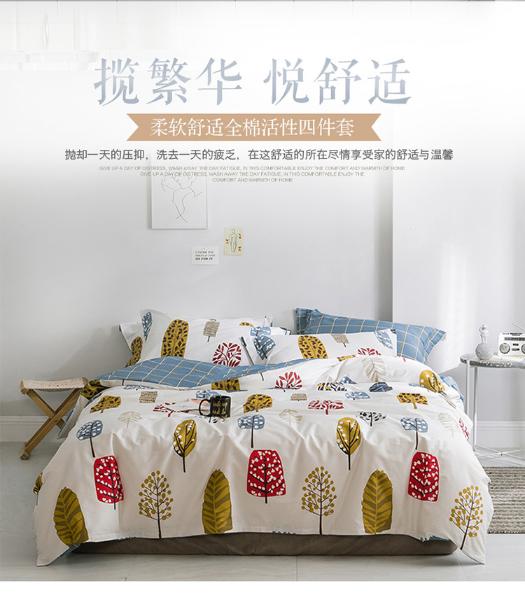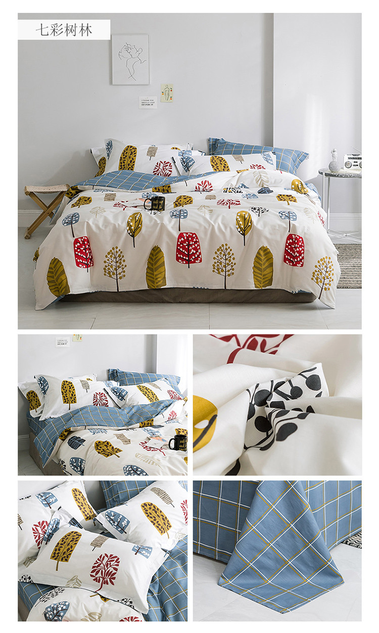 窝米 2019全棉13372田园花卉系列四件套床单款七彩树林