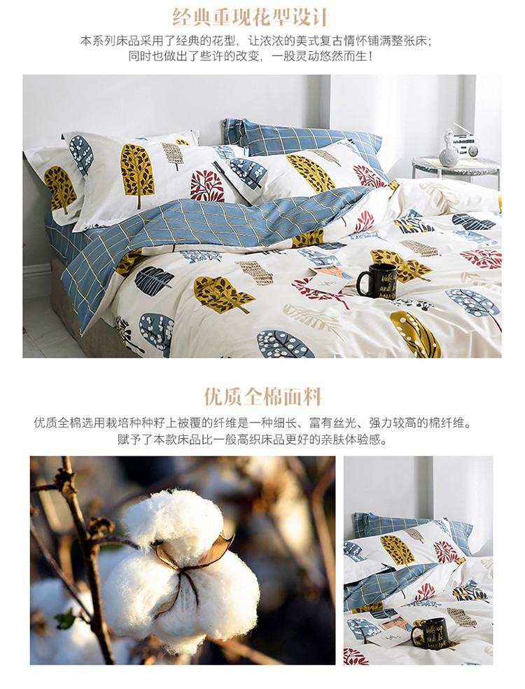 窝米 2020春夏新品全棉13372四件套小波西风系列小花花,小花花