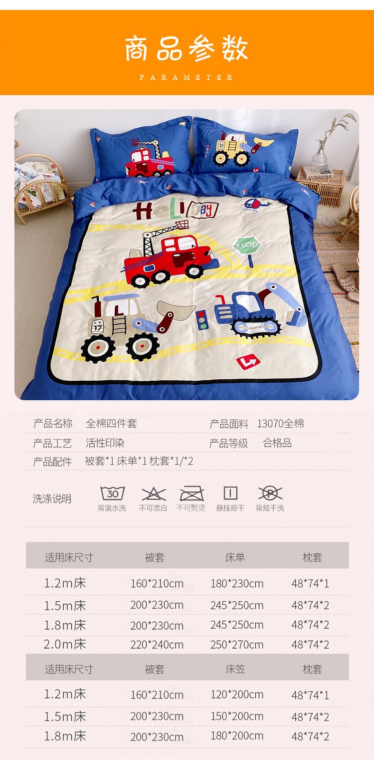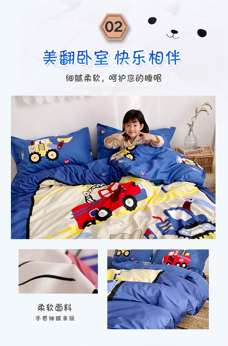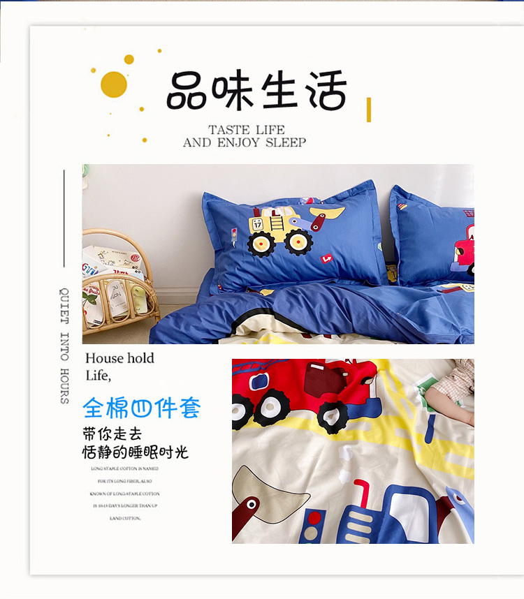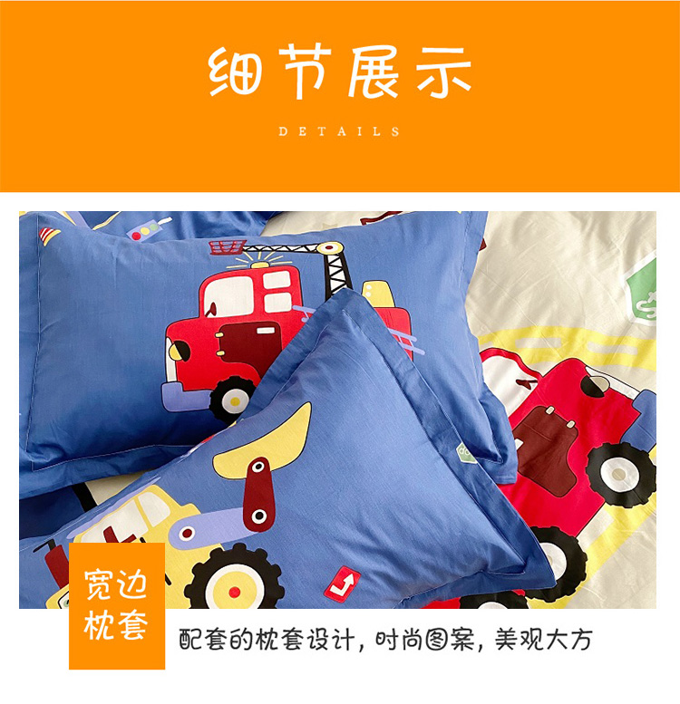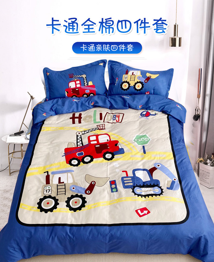 当前位置: 91家纺网 > 商品网购 > 床品套件 > 四件套 > 全棉普通四件套 > 金爱家家纺 2021新款童梦系列大版卡通全棉四件套 独家工程车