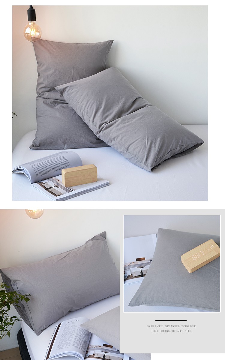 简约纯色全棉水洗棉枕套单件纯棉床罩单人枕巾枕头套