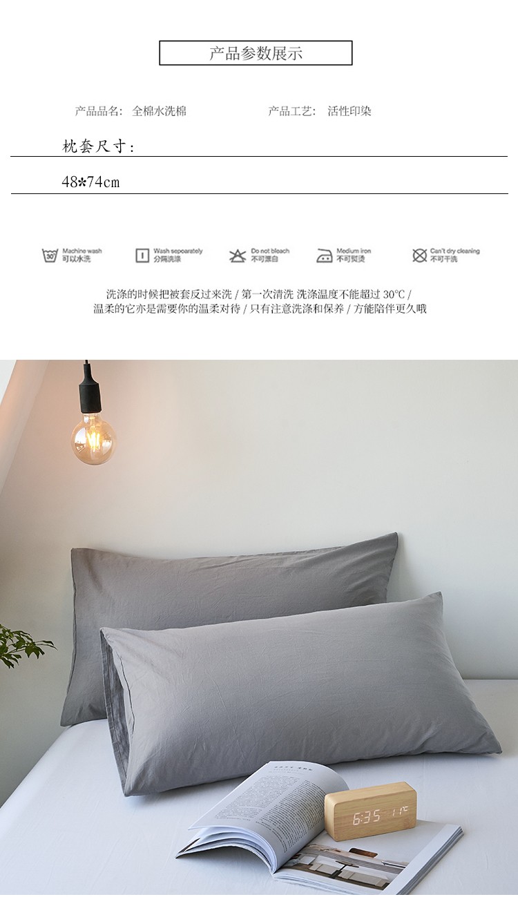 商品名称:简约纯色全棉水洗棉枕套单件纯棉床罩单人枕巾枕头套
