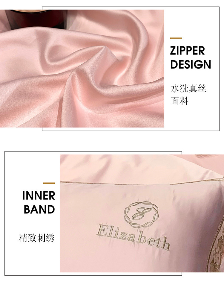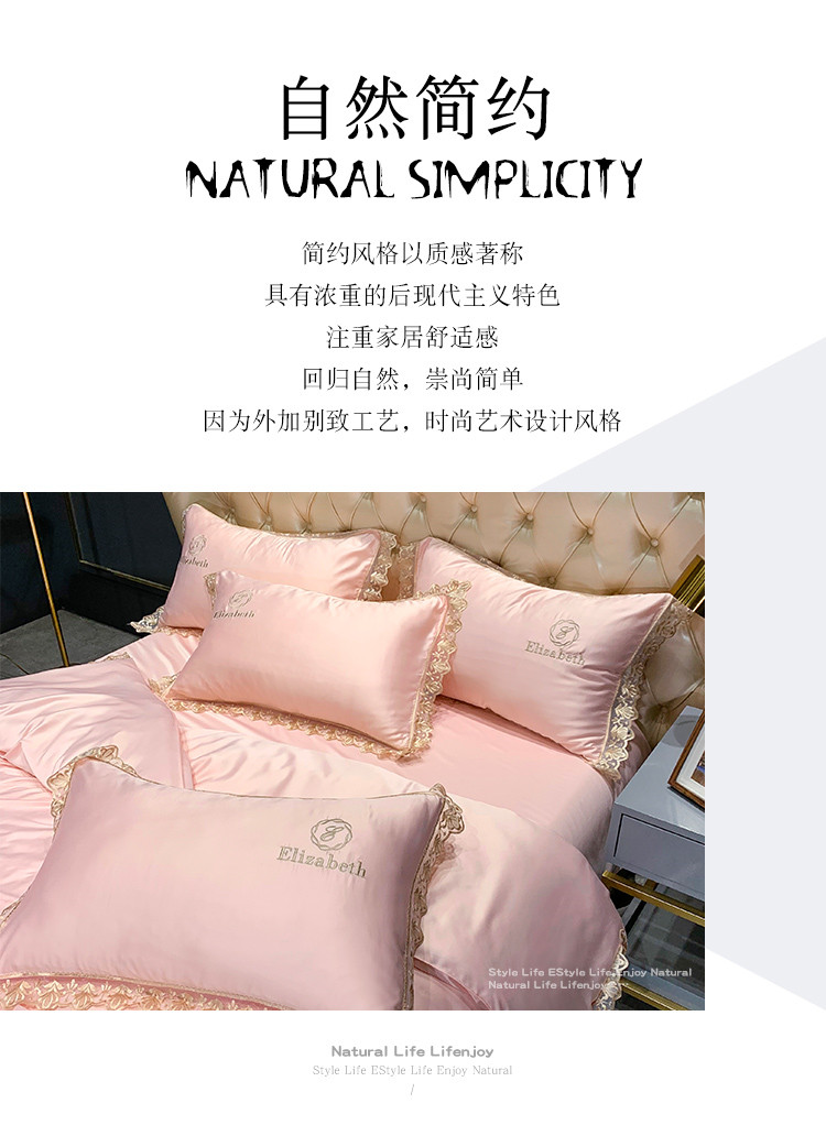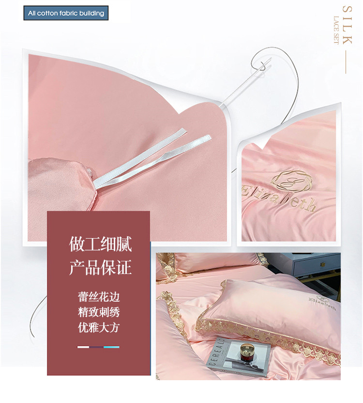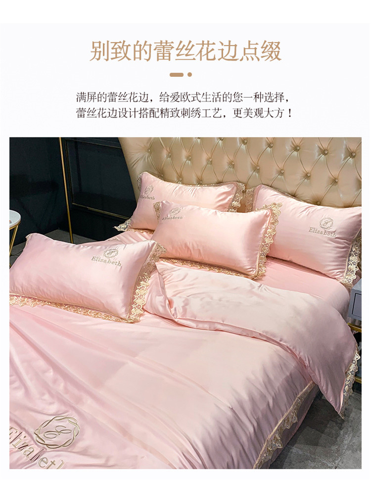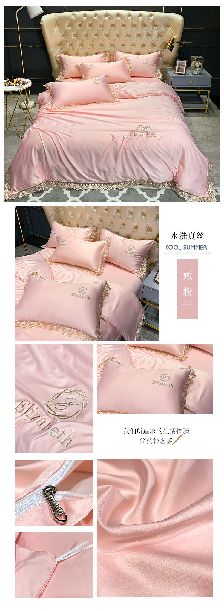 商品名称:米奈 2020新款水洗真丝蕾丝花边爱琳系列四件套 嫩粉