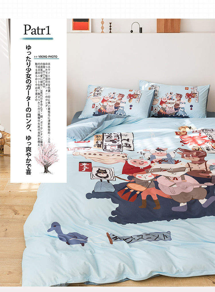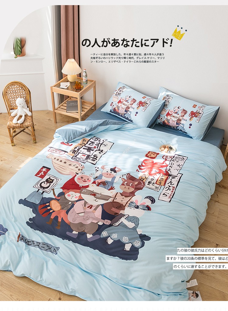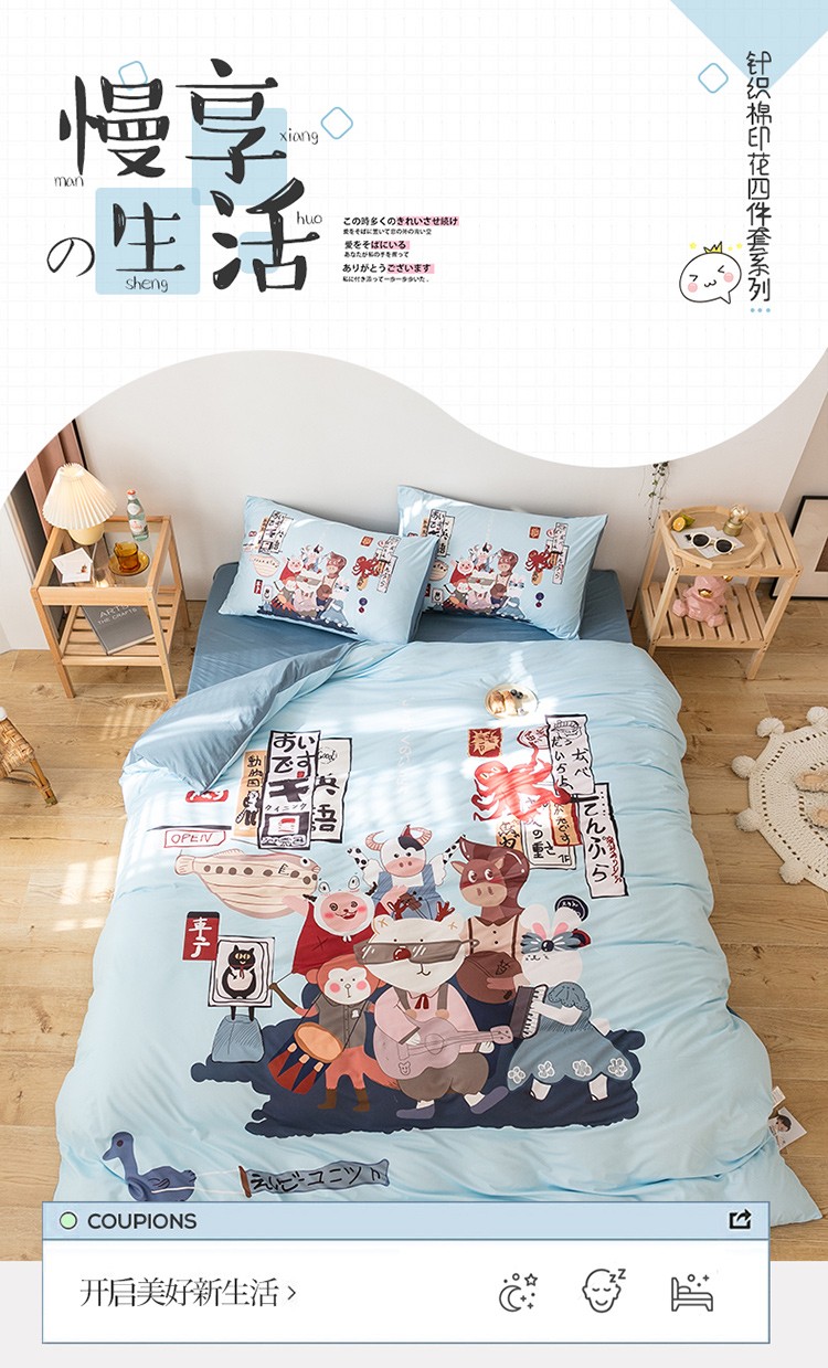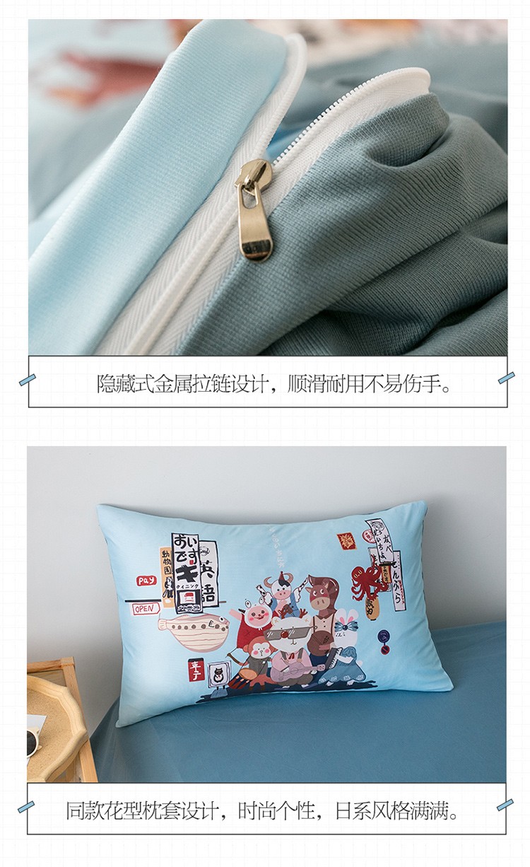 商品名称:爱缦 2020新款日系针织棉数码大版印花四件套 动物乐园