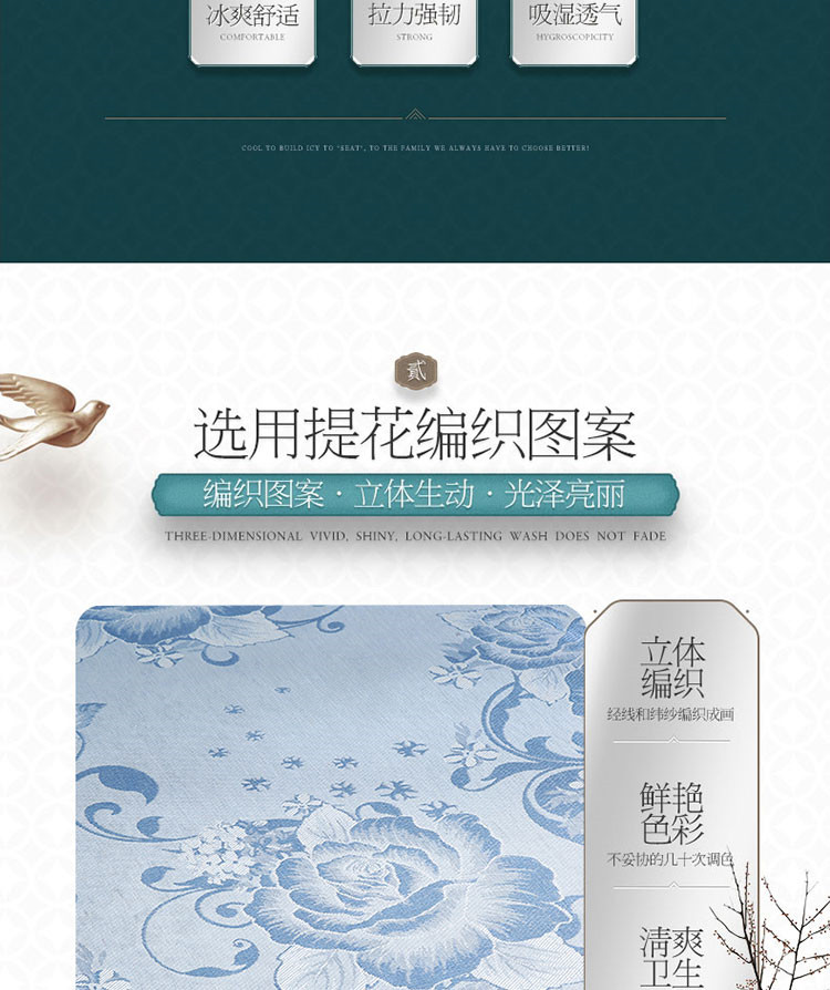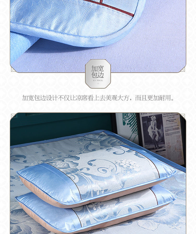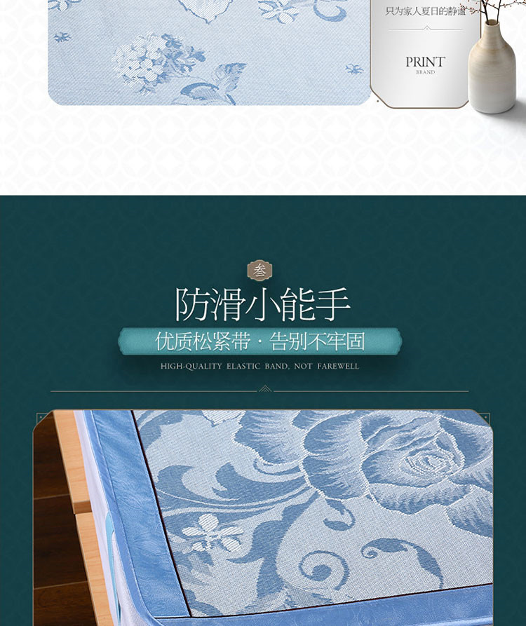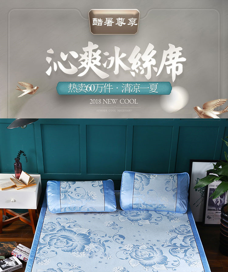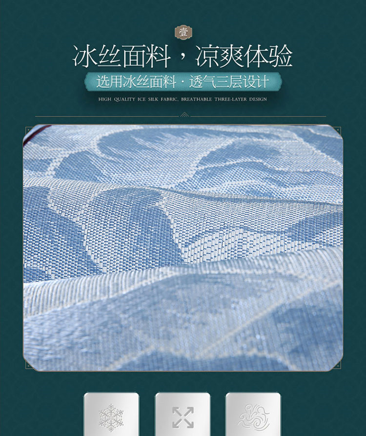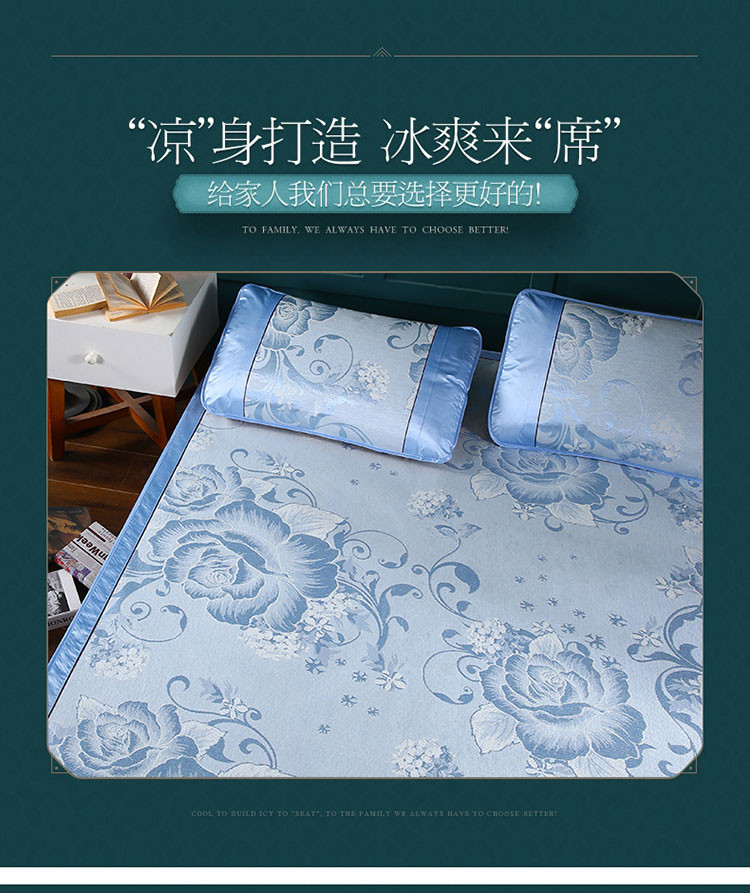 商品名称:能好家纺 2021新款提花冰丝席 富贵花开蓝