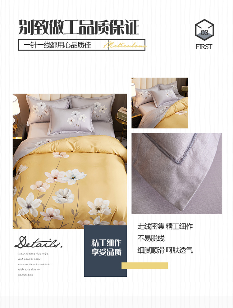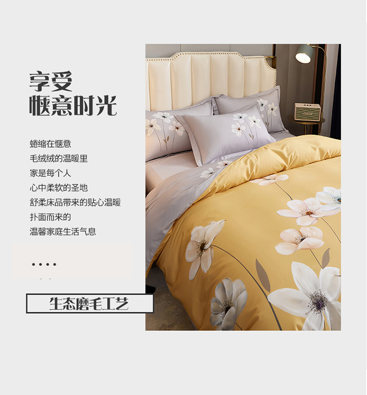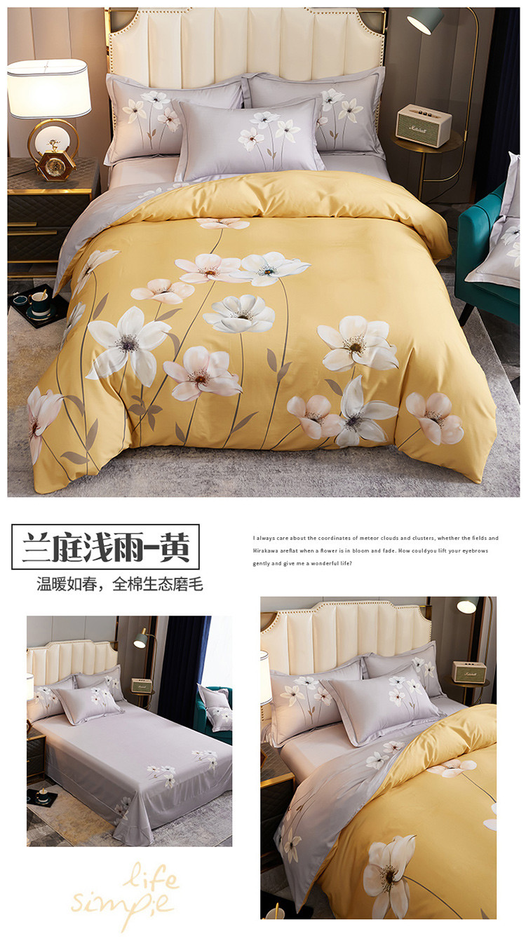 商品名称:雲归梦 2020新款全棉生态磨毛大版四件套 兰庭浅雨-黄