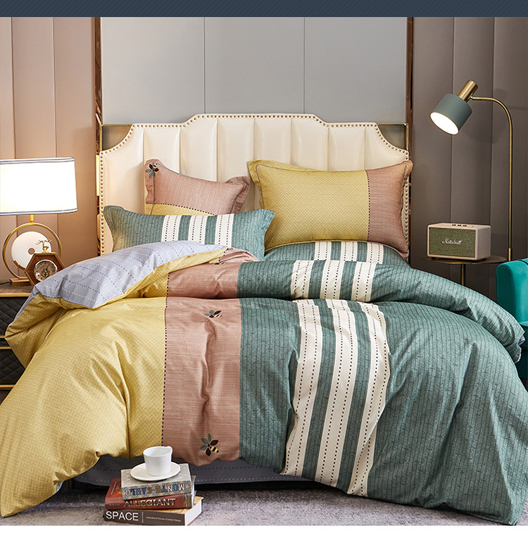 (总)雲归梦 2021新款全棉生态磨毛刺绣四件套,慕思-橙色,慕思-粉紫,慕思-灰,慕思-米黄,慕思-青绿,慕思-天蓝