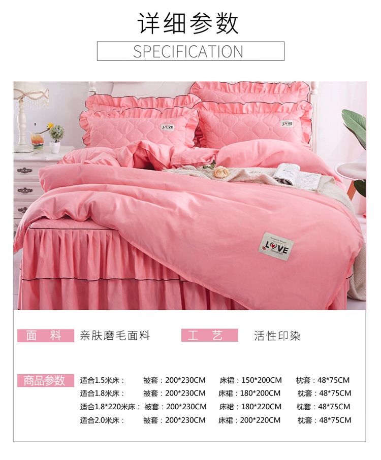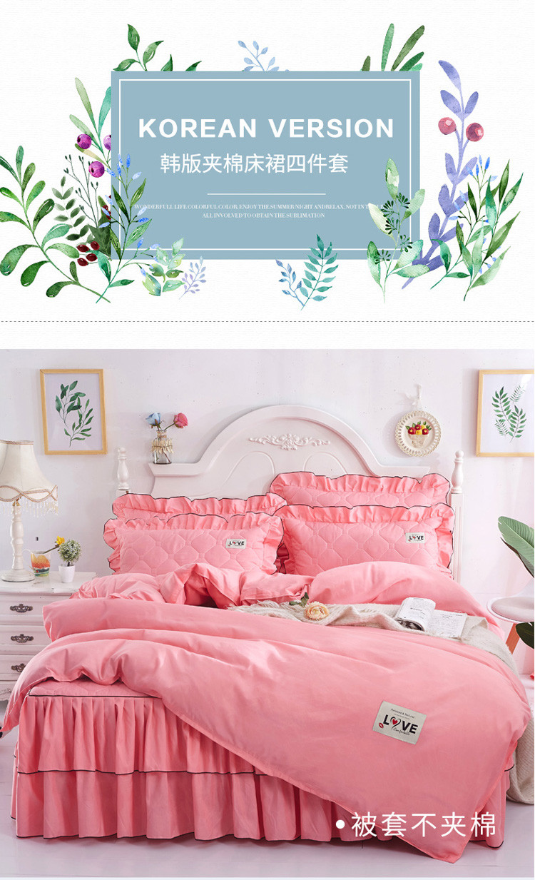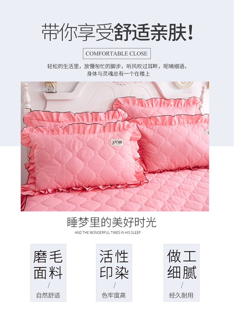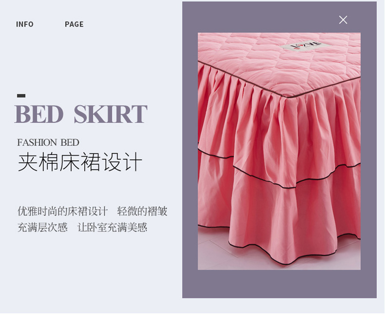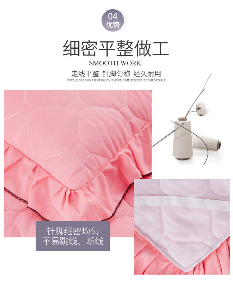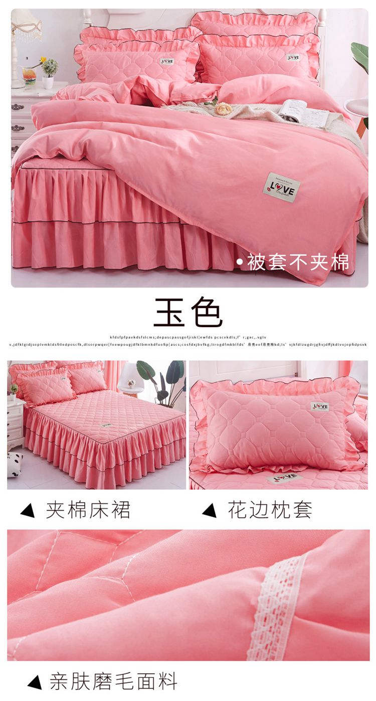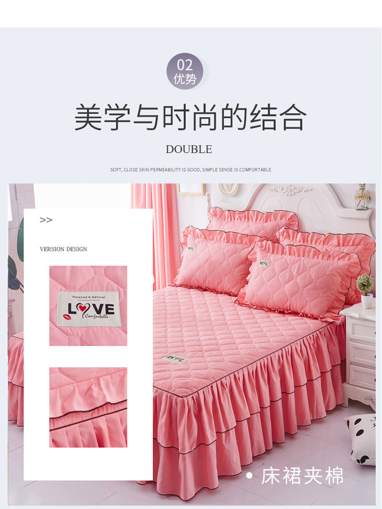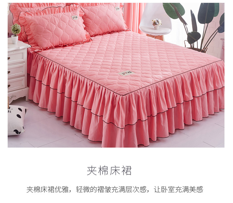 (总)艾裙海 2025新款90克磨毛夹棉绗缝床裙,粉色,大红色,米白色,深灰色,紫色,藏青色,宝蓝色,浅灰色,粉玉色,豆沙红