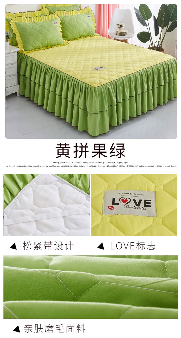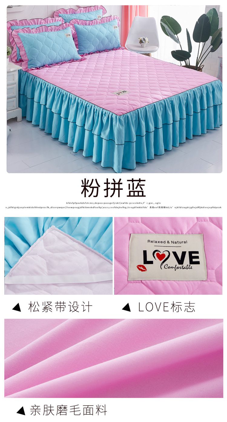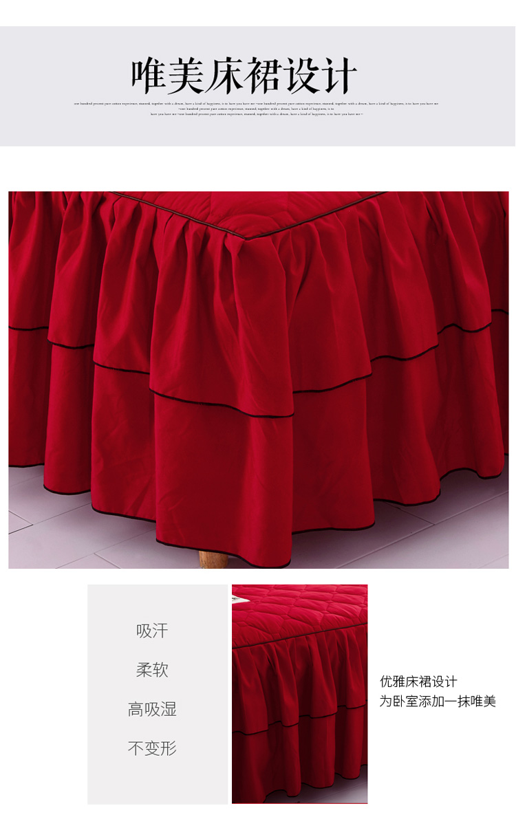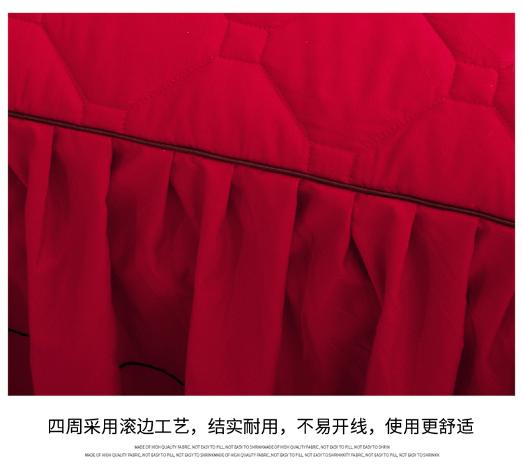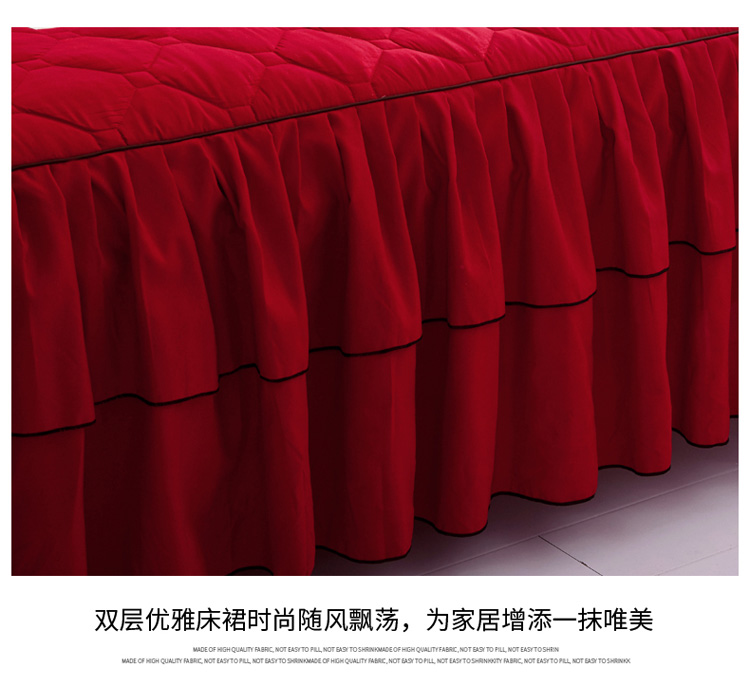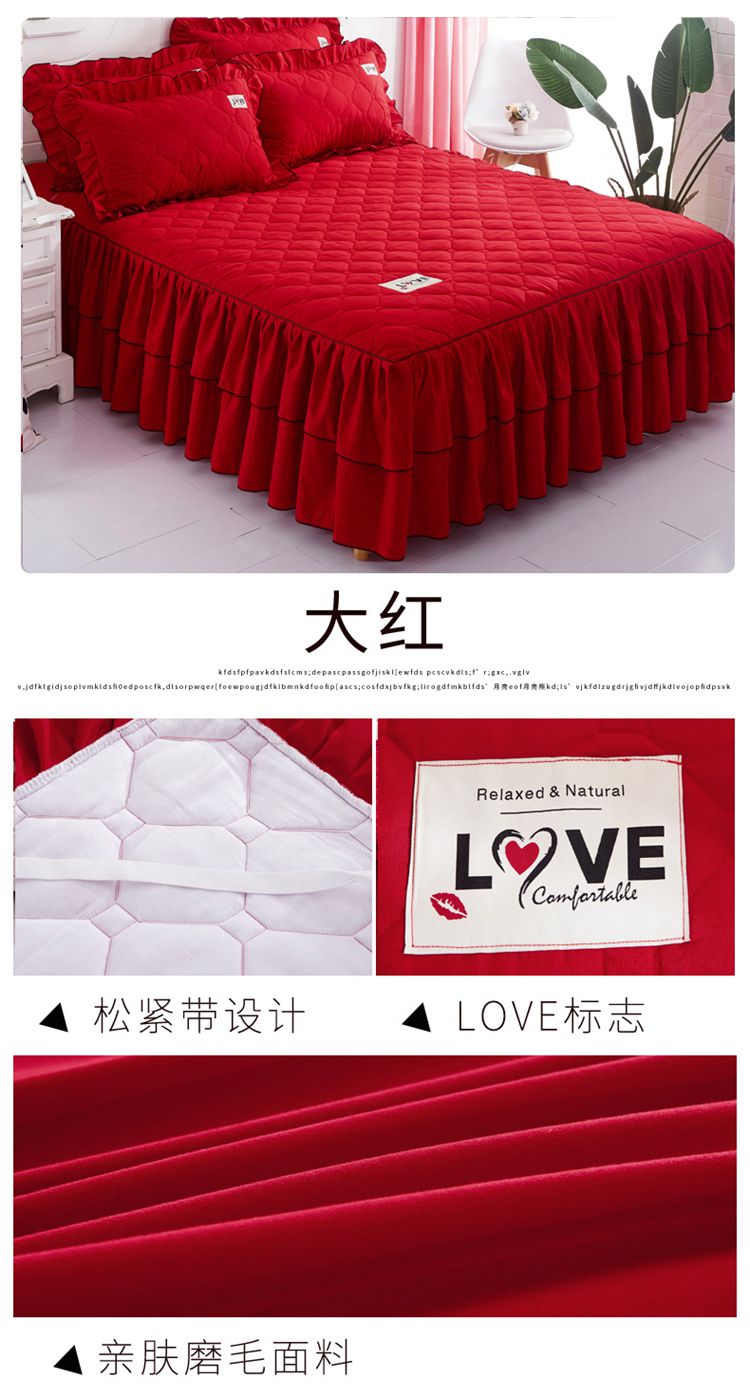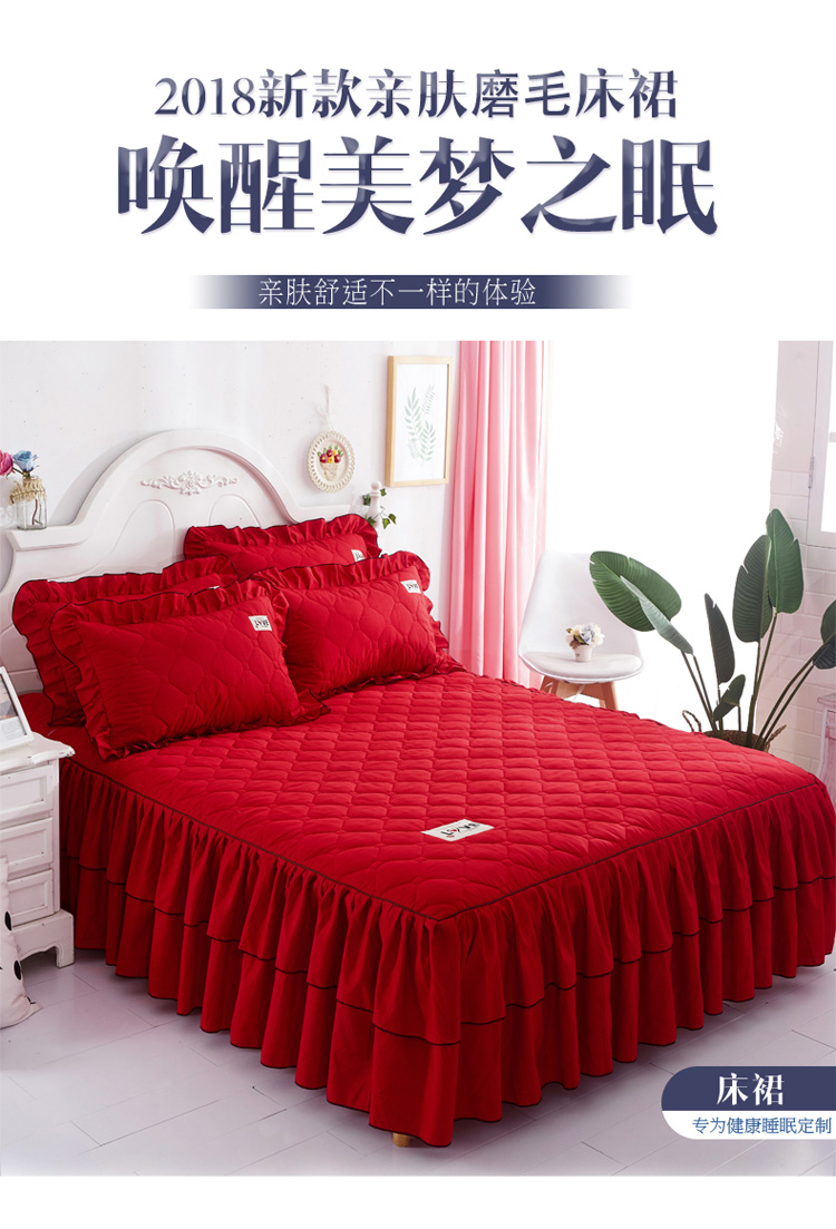 (总)艾裙海 2025新款90克磨毛夹棉绗缝床裙,粉色,大红色,米白色,深灰色,紫色,藏青色,宝蓝色,浅灰色,粉玉色,豆沙红