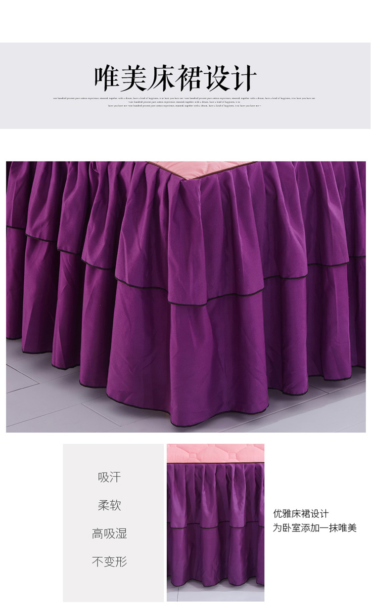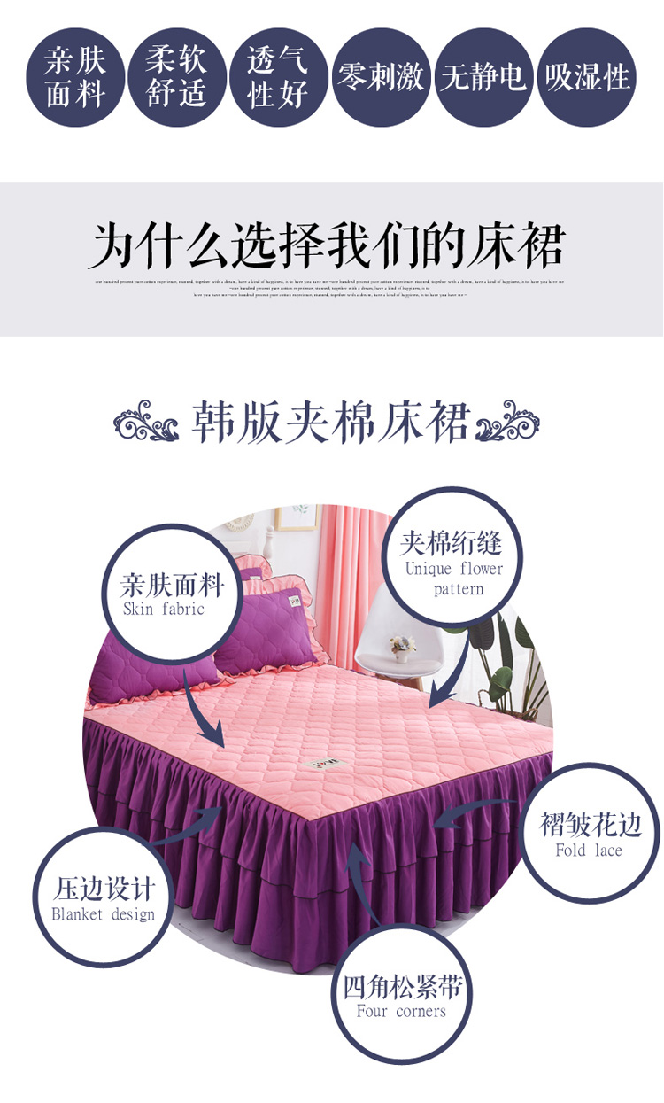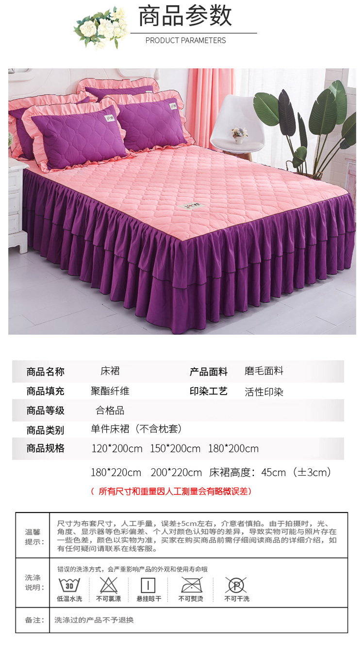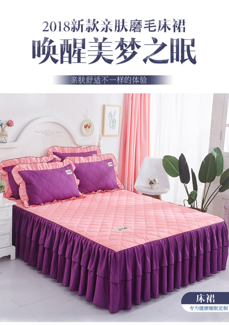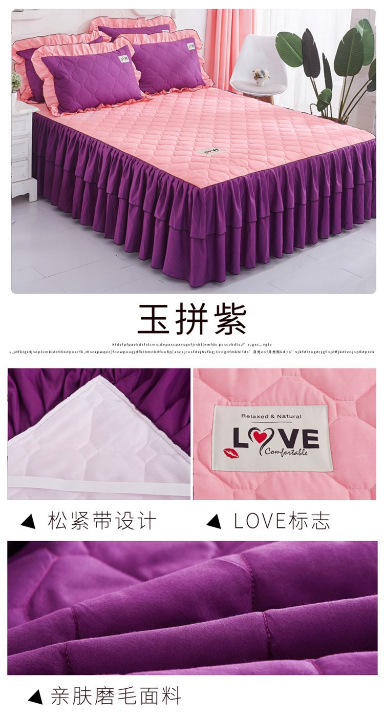 (总)艾裙海 2025新款90克磨毛夹棉绗缝床裙,粉色,大红色,米白色,深灰色,紫色,藏青色,宝蓝色,浅灰色,粉玉色,豆沙红