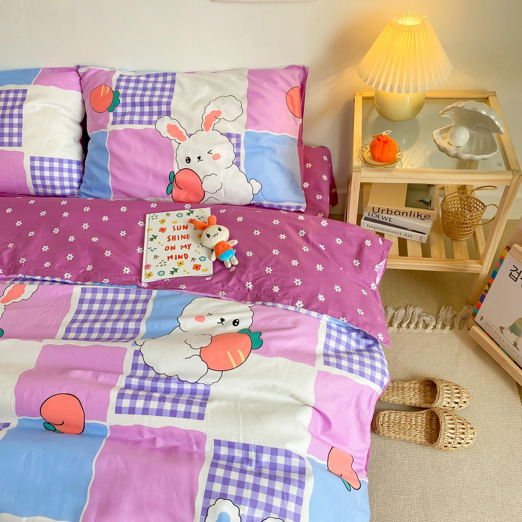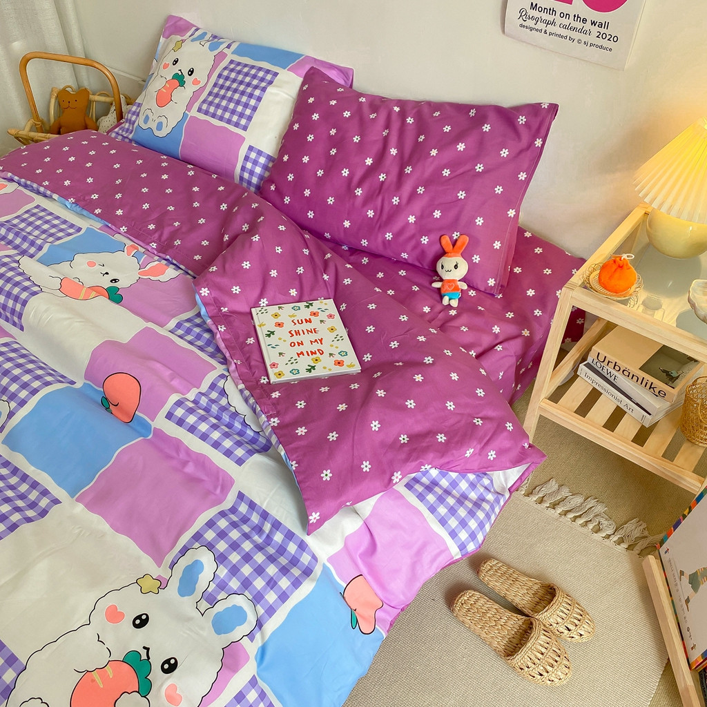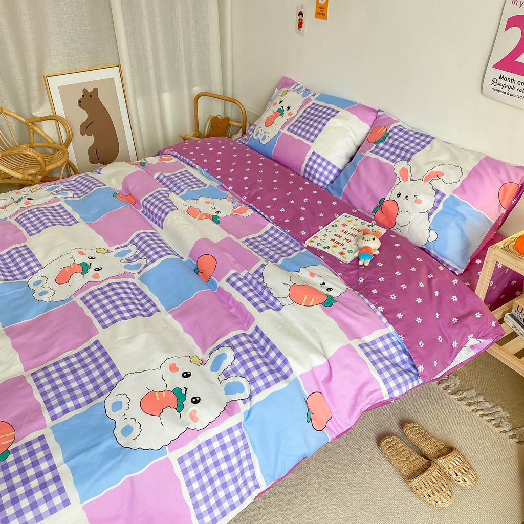 商品名称:星期八 2020新款全棉13070开学四件套 紫格兔兔