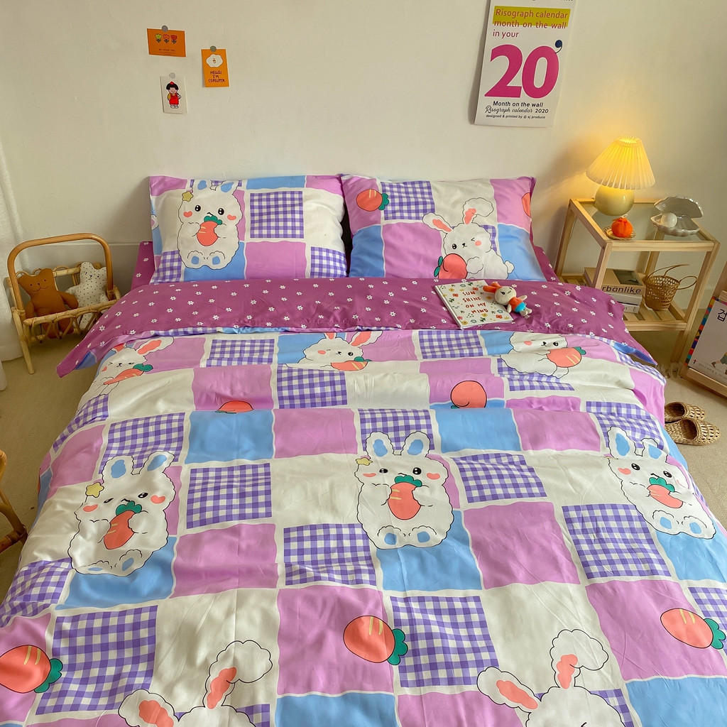 星期八 2020新款全棉13070开学四件套 紫格兔兔