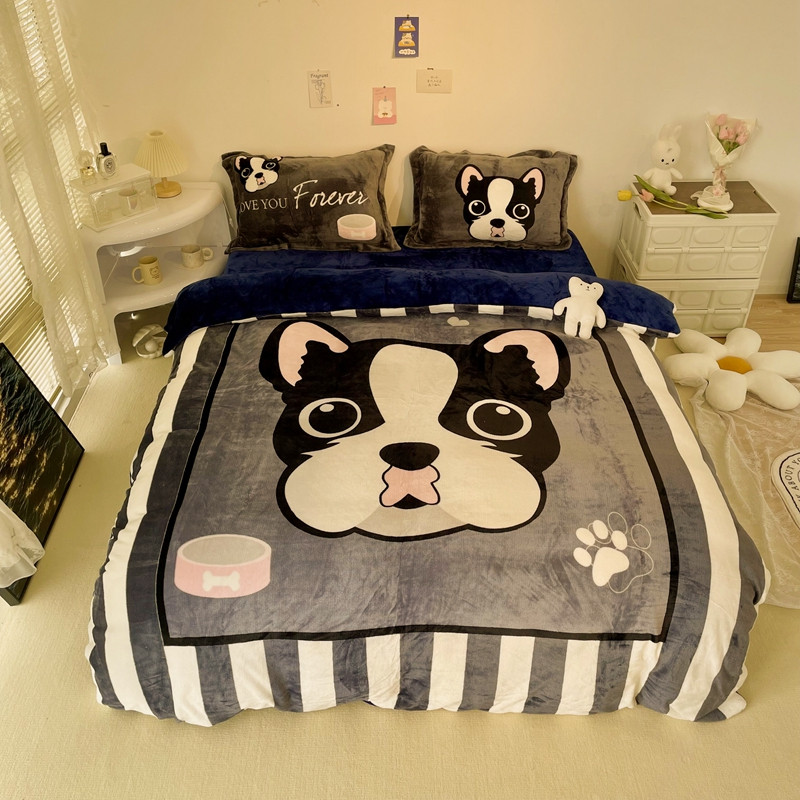 (总)慕尚家纺 2025新款豆豆绒刺绣四件套,大耳狗 白蓝,玫瑰 白粉