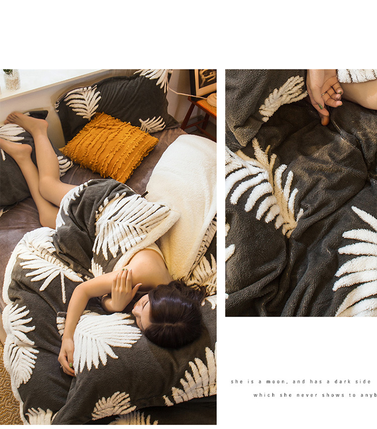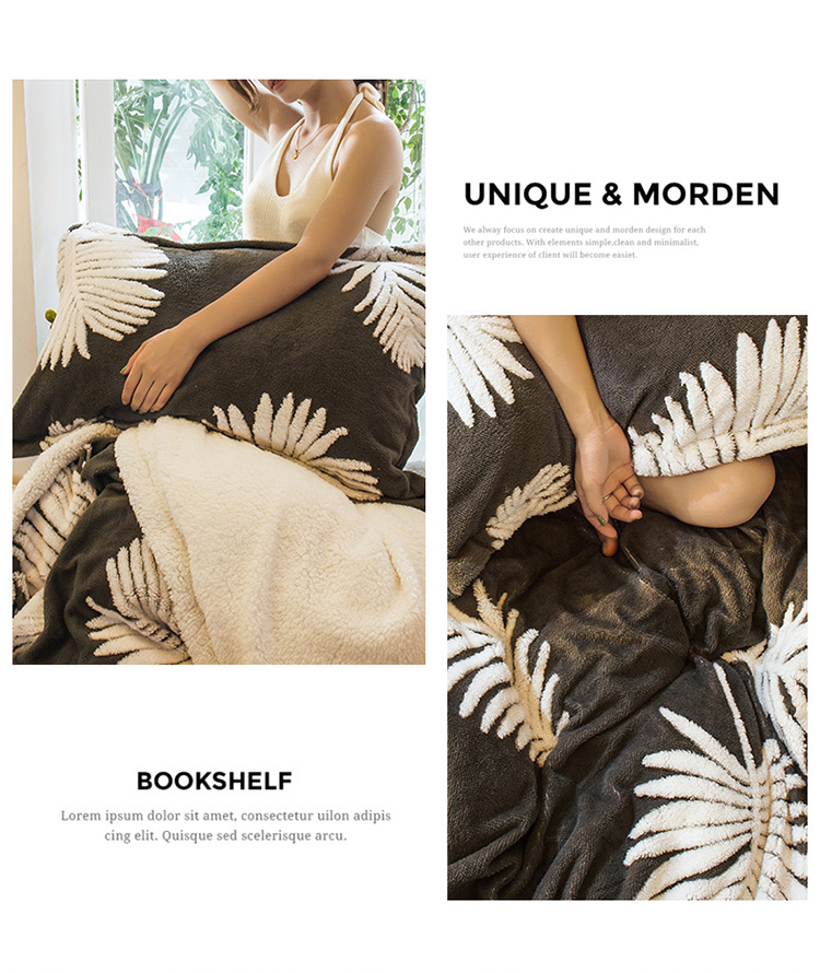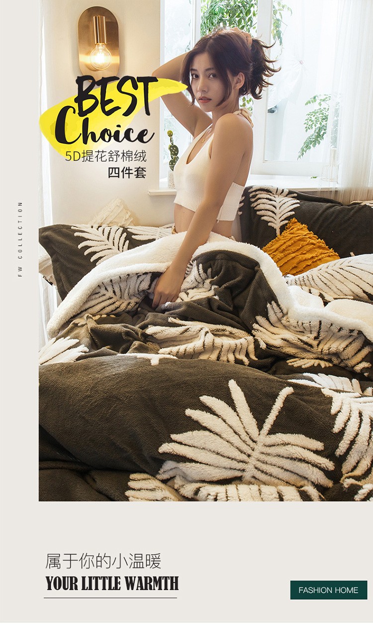 佰亿莱 2024新款5D提花舒棉绒四件套 升级版-摩卡灰羽叶