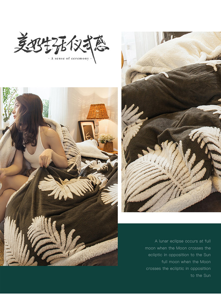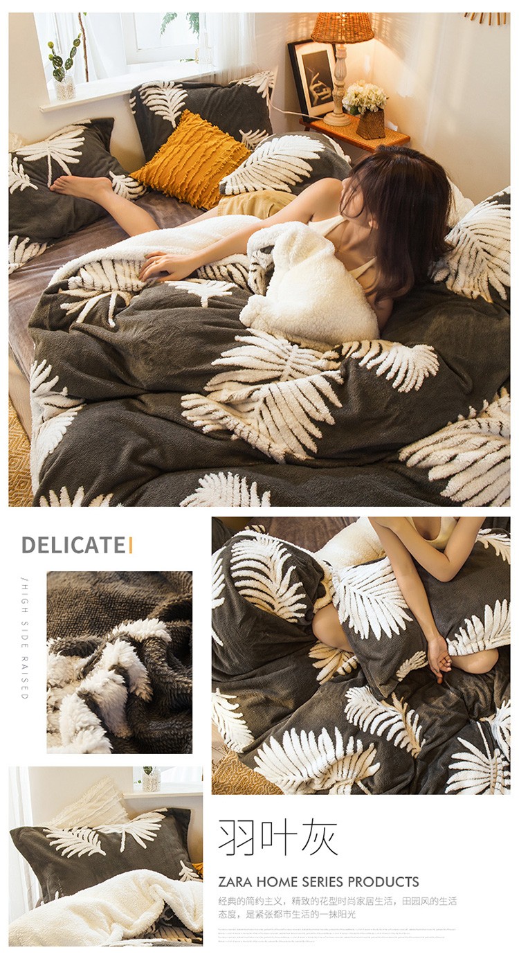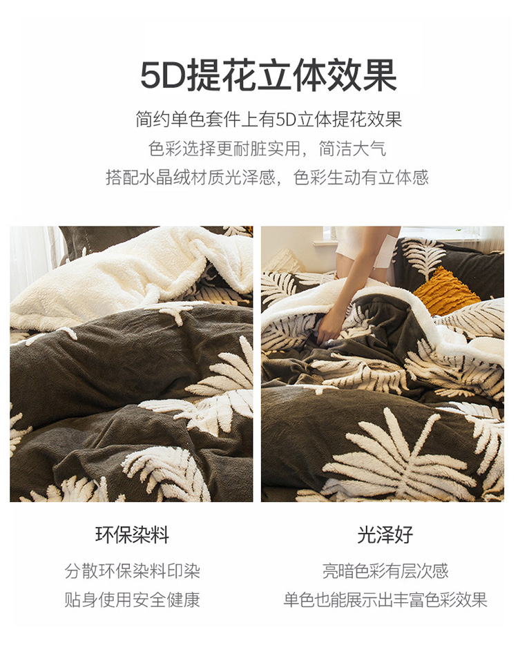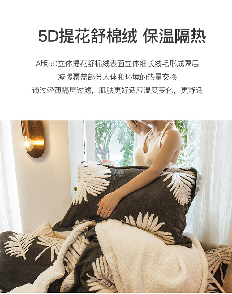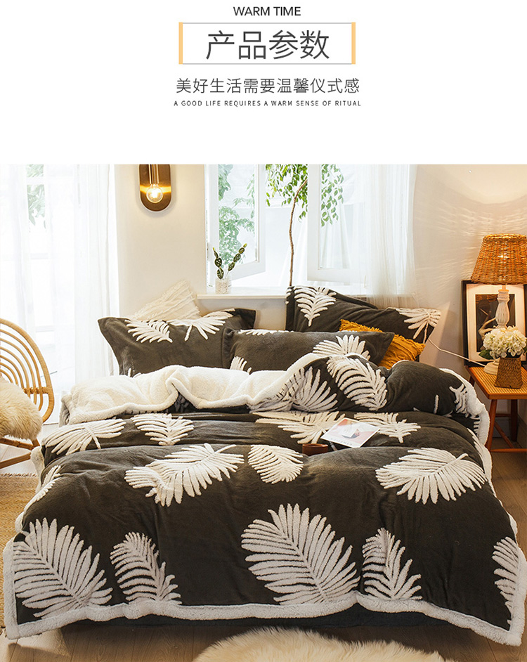 商品名称:佰亿莱 2024新款5D提花舒棉绒四件套 升级版-摩卡灰羽叶