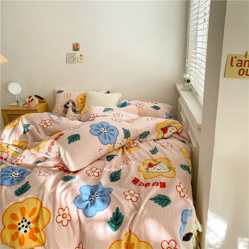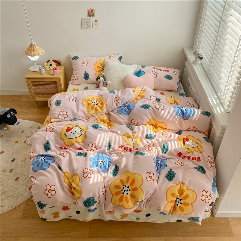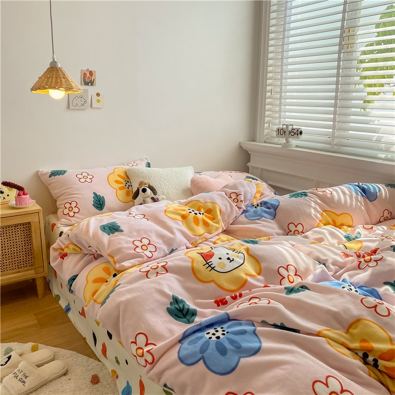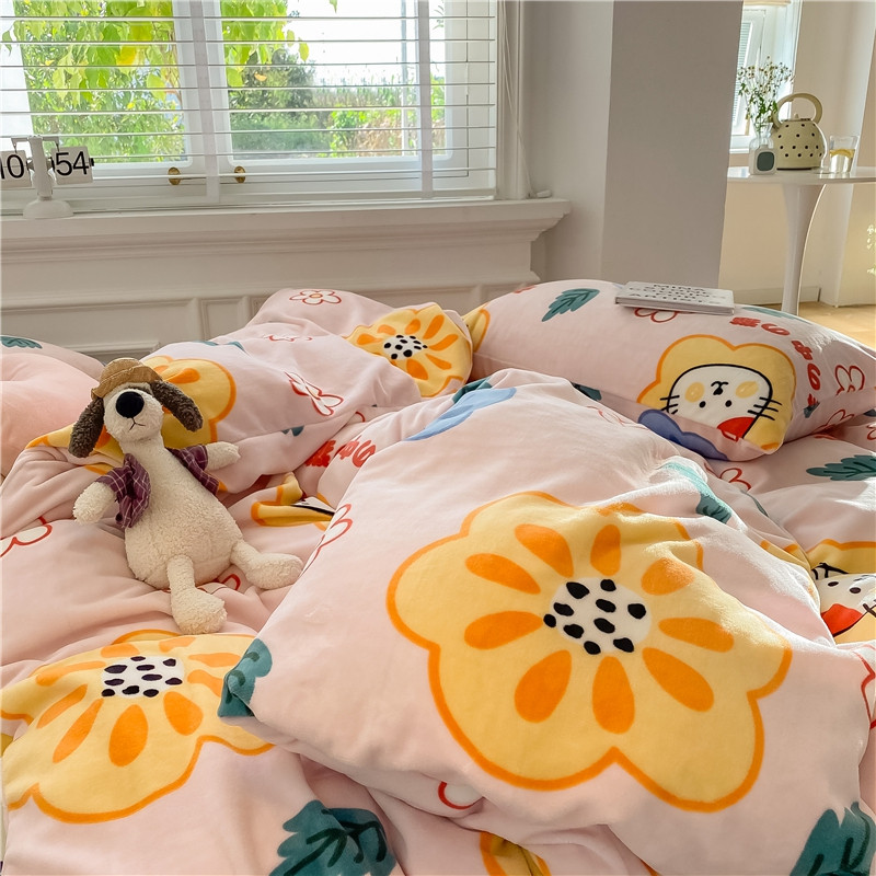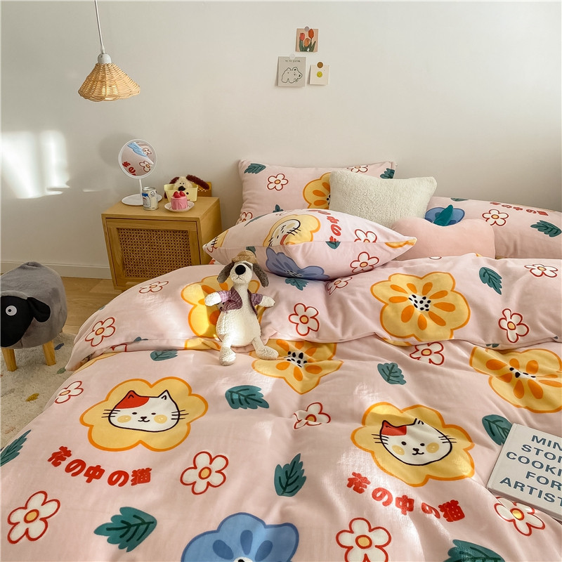 棉眠 2020新款秋冬卡通牛奶绒四件套 花花猫