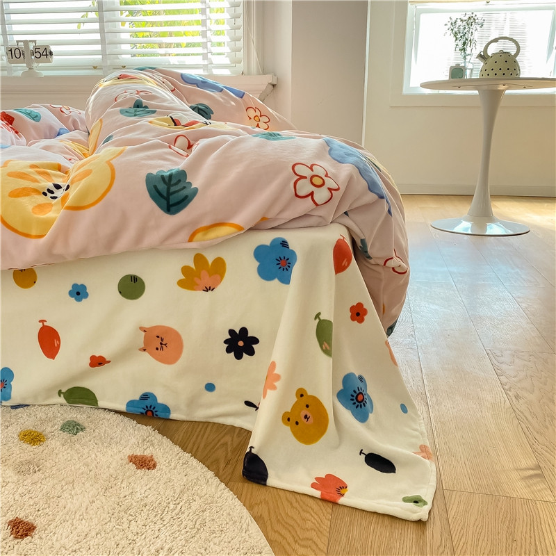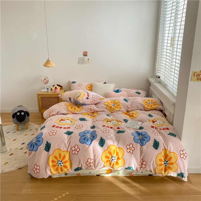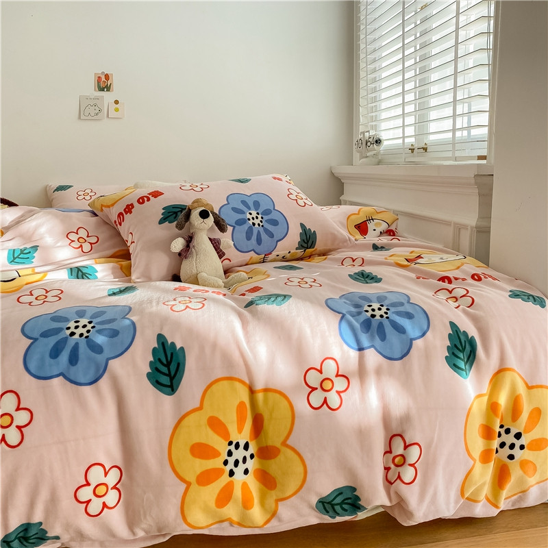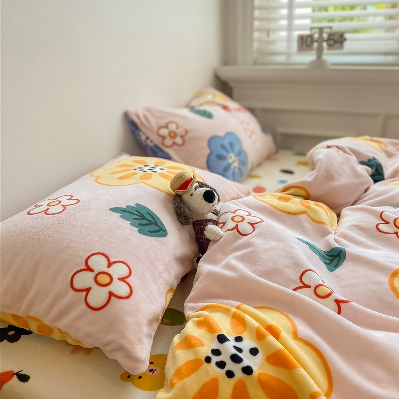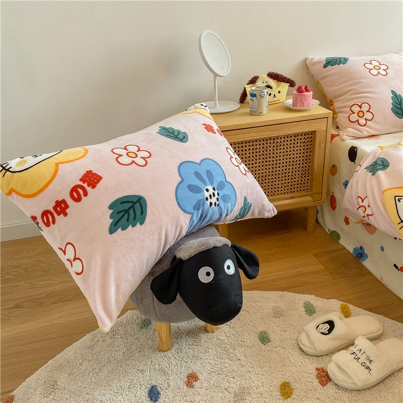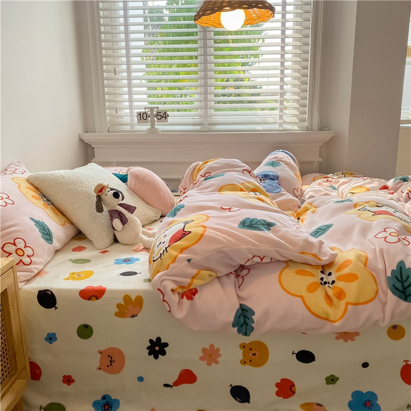 棉眠 2020新款秋冬卡通牛奶绒四件套 花花猫
