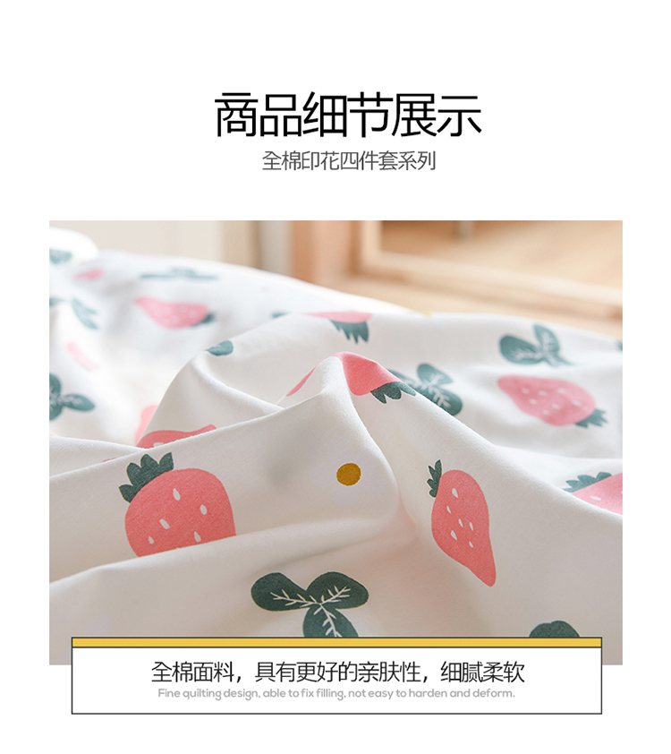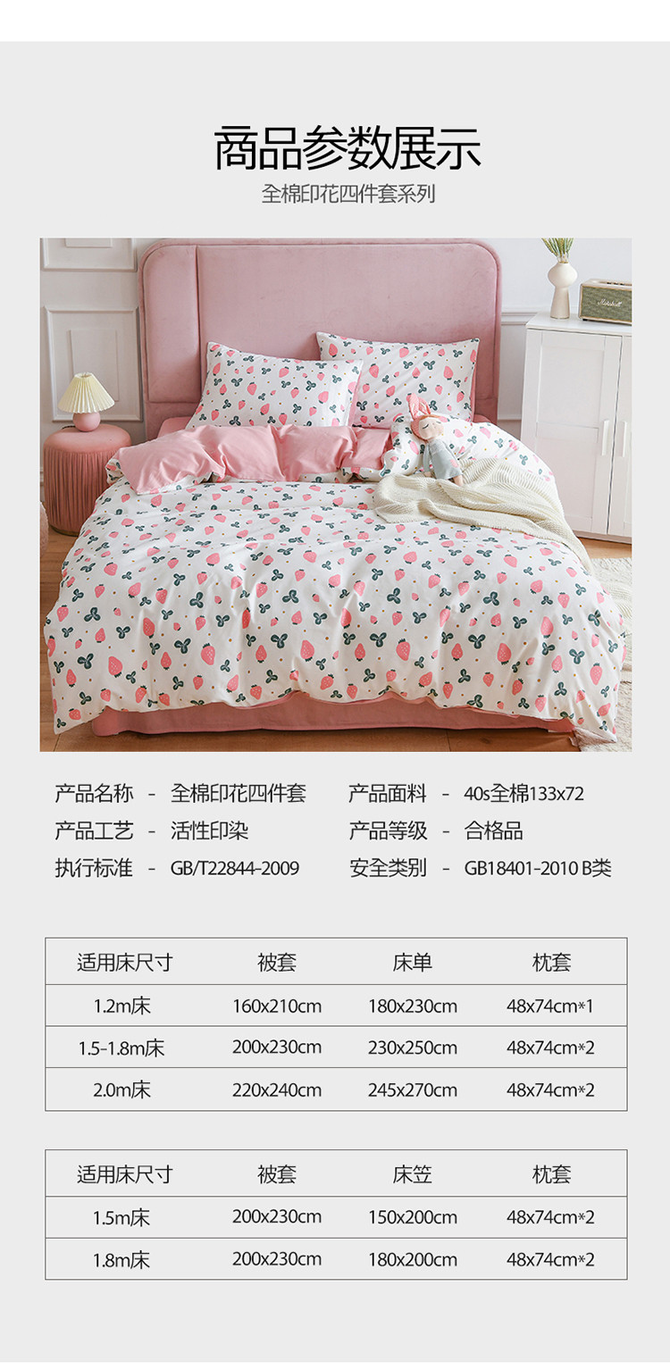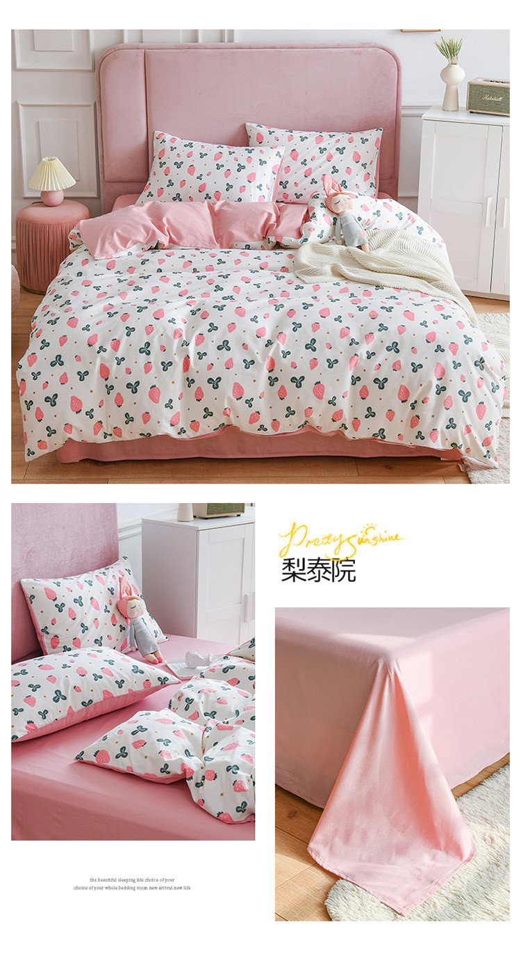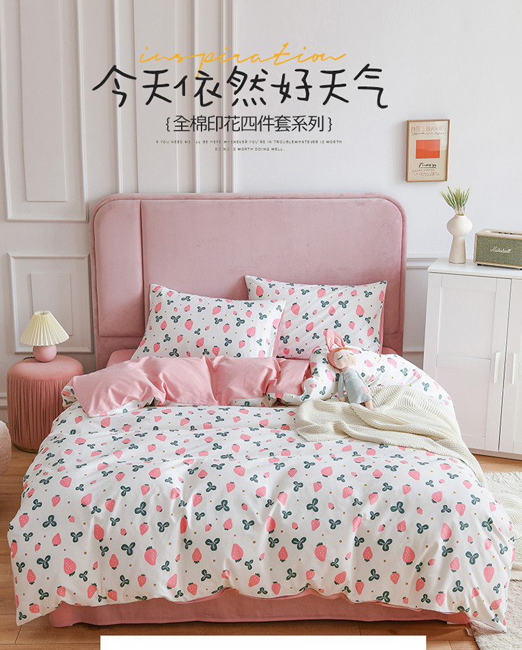 (总)捌月 2023新款13372全棉四件套竖纹印花系列,草莓园,兔小姐,小兰花,小甜心
